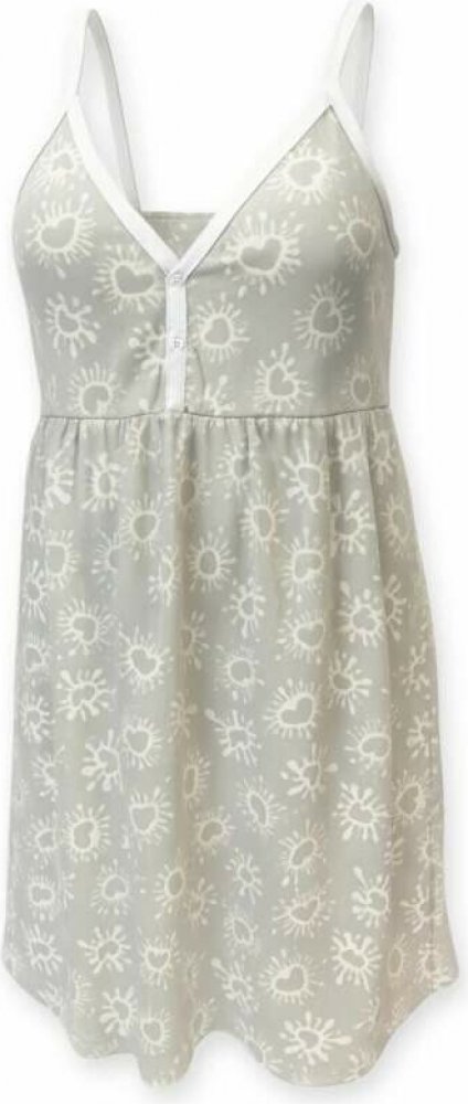 Těhotenská a kojící noční košilka na ramínka Srdce šedá