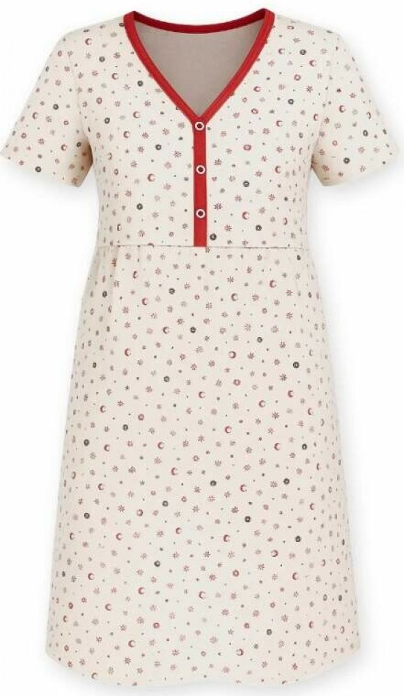 Volný pohodlný střih, praktický v těhotenství i po porodu, zapínáním na patentky umožňuje pohodlné kojení.