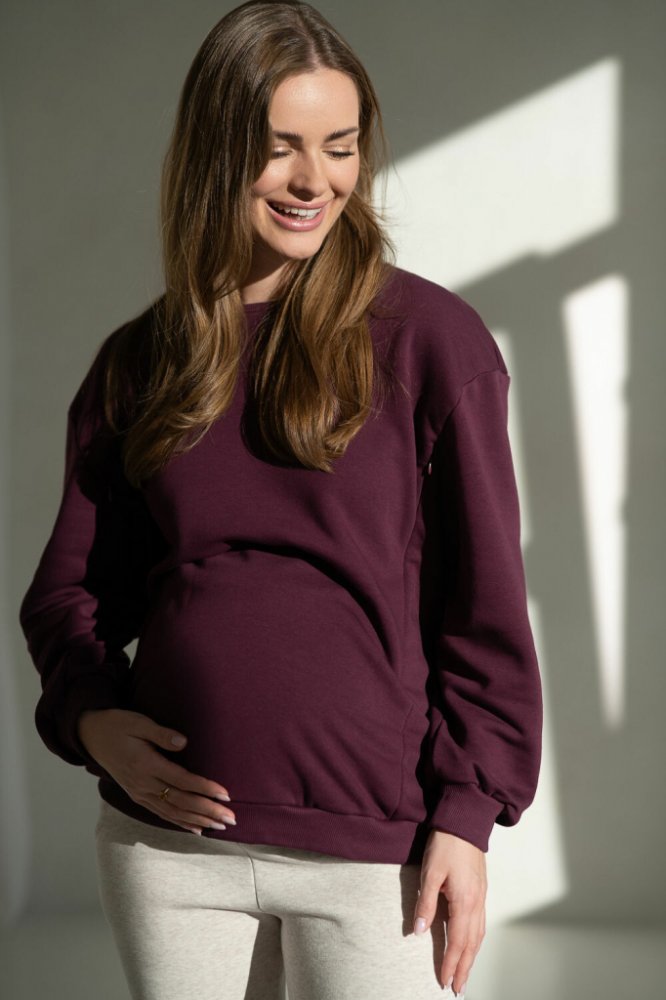 Těhotenská a kojící oversized mikina Milk It Easy Mauve Wine