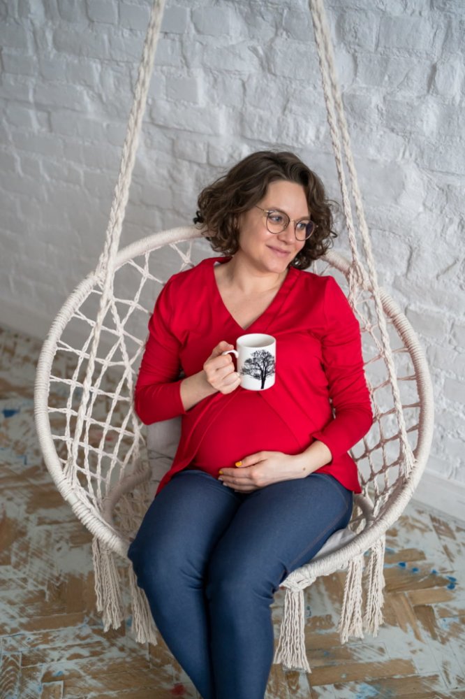Stylová halenka pro těhotné a kojící ženy s dlouhým rukávem.