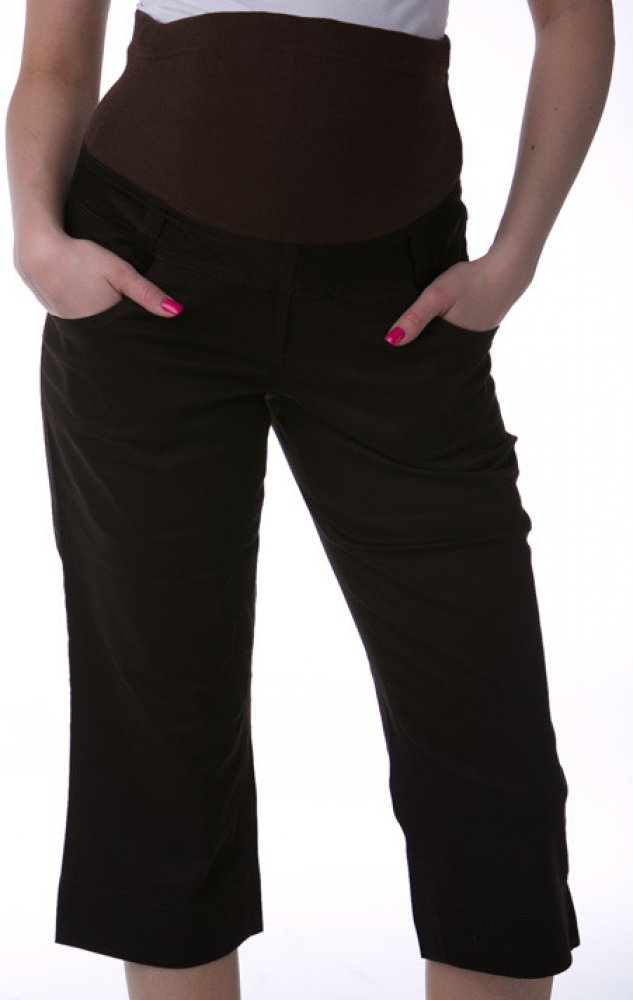 Těhotenské 3/4 kalhoty, třičtvrťáky z velmi příjemného materiálu. V příjemném moderním provedení, kdy je střih kalhot řešený tak, aby kalhoty krásně a pohodlně seděly a nic nevadilo rostoucímu bříšku. Užívejte si módu i v těhotenství.