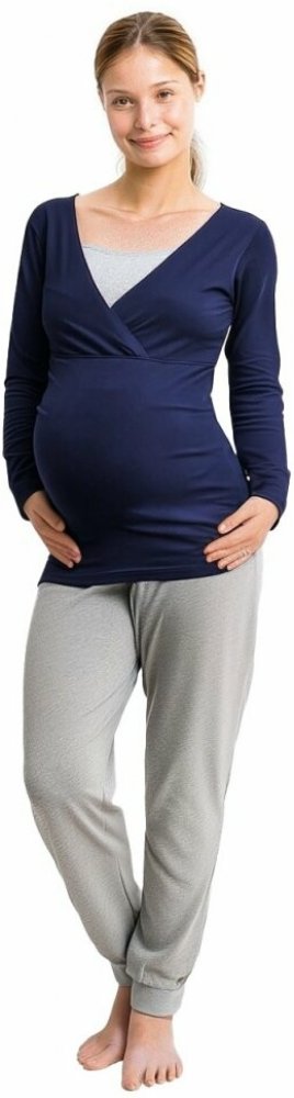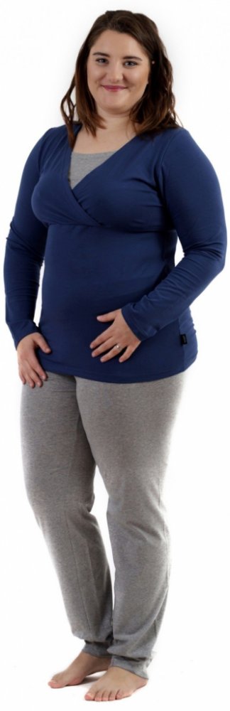 Těhotenské a kojicí pyžamo dlouhé jeans modré+šedý melír