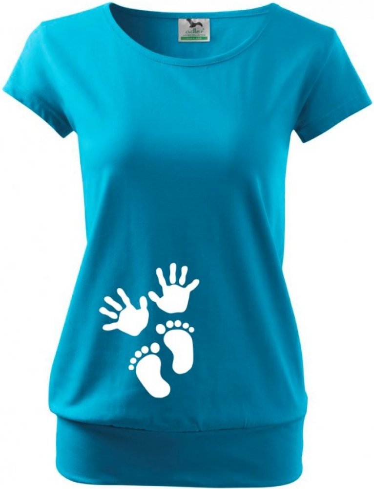 Těhotenské tričko Ručičky a nožičky tyrkysová