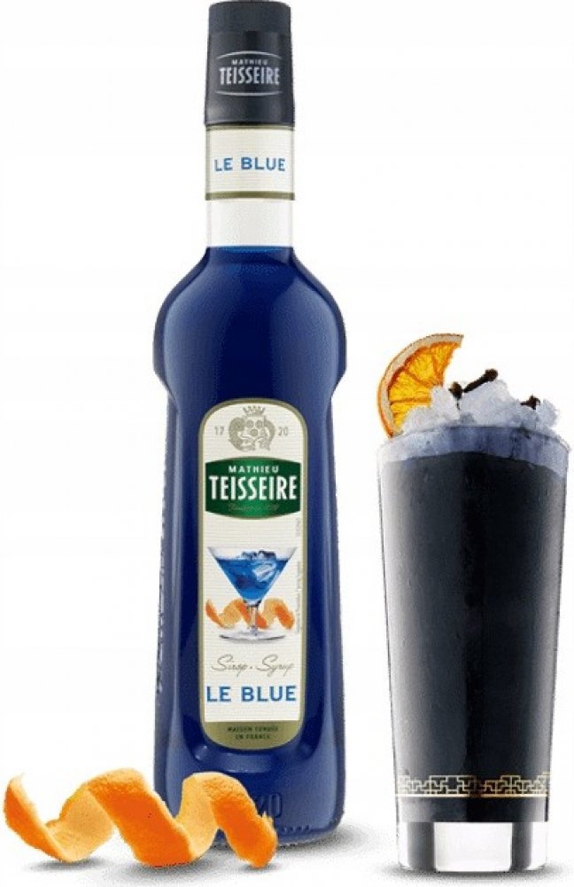 Sirup Blue Curacao TEISSEIRE je nealkoholický doplněk s intenzivní tropickou chutí inspirovanou klasickým likérem. Vyznačuje se sytě modrou barvou, která dodává nápojům a dezertům jedinečný vzhled. Produkt je ideální do koktejlů, limonád, perlivé vody, smoothies, kávy, čaje a mnoha dalších směsí.