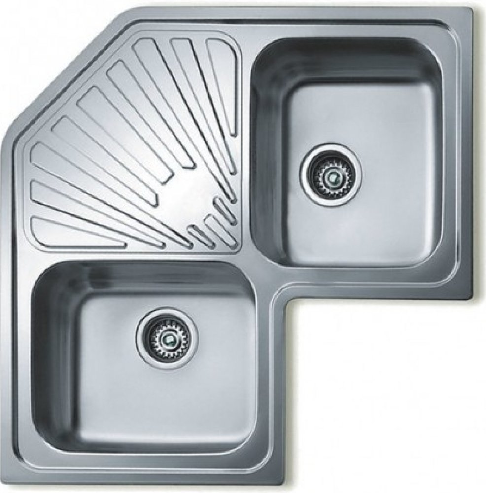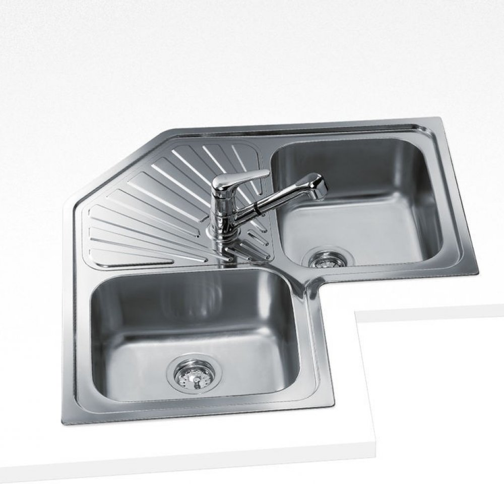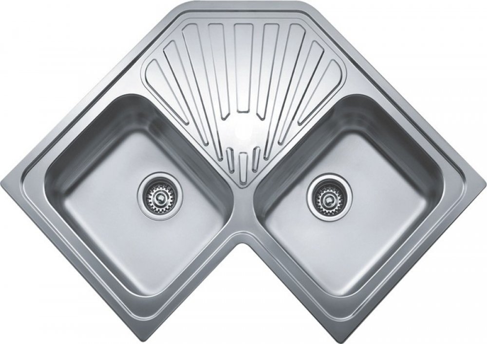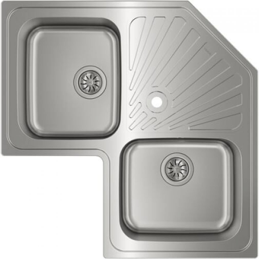 Praktický rohový dřez s dvěma prostornými vanami vyrobený z kvalitní nerezové oceli. Díky svému rohovému provedení maximálně využívá prostor v kuchyni a nabízí komfortní řešení pro mytí nádobí.