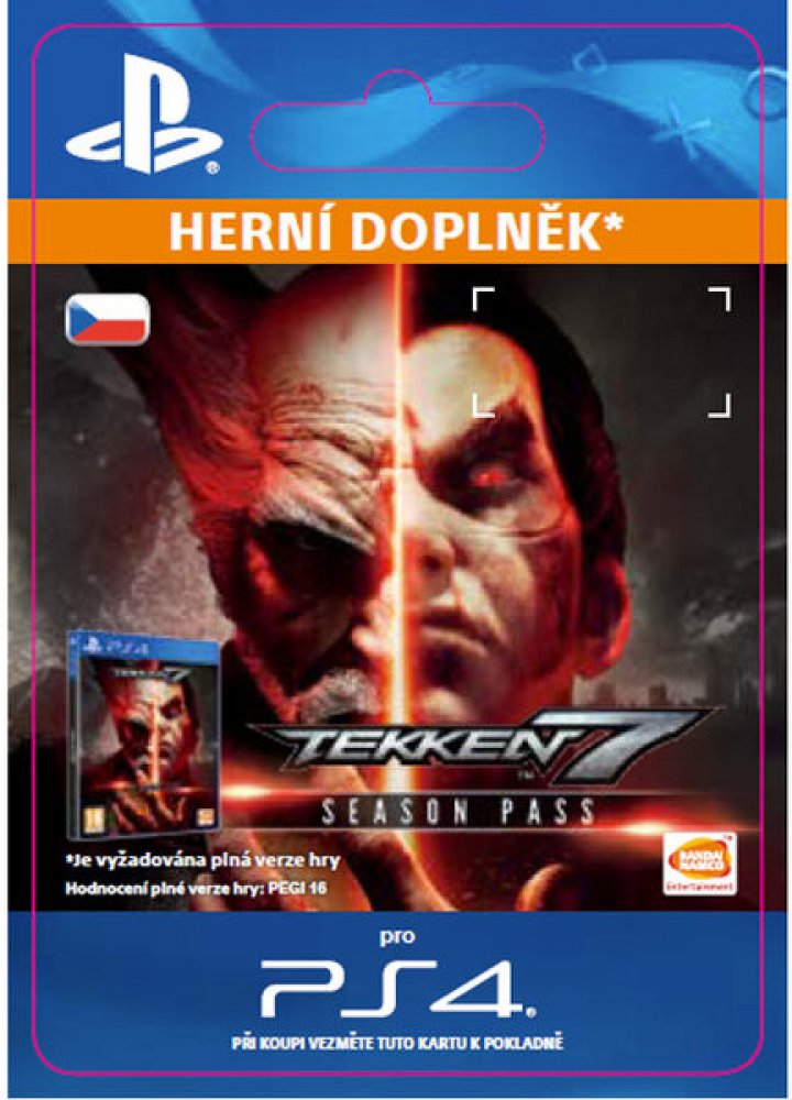 Klíč je možné použít pouze s českým (CZ) PlayStation Network účtem. Jedná se o dodatek a je nutné vlastnit základní hru v Tekken 7 v platformě Playstation! Prodlužte svůj Tekken 7 zážitek přes Season Pass! Season Pass Vám poskytne přístup ke třem obsahem Tekken 7 (které jsou jinak prodávány samostatně), včetně: Nové hratelné postavy Nové levely Nový režim hry Kos...