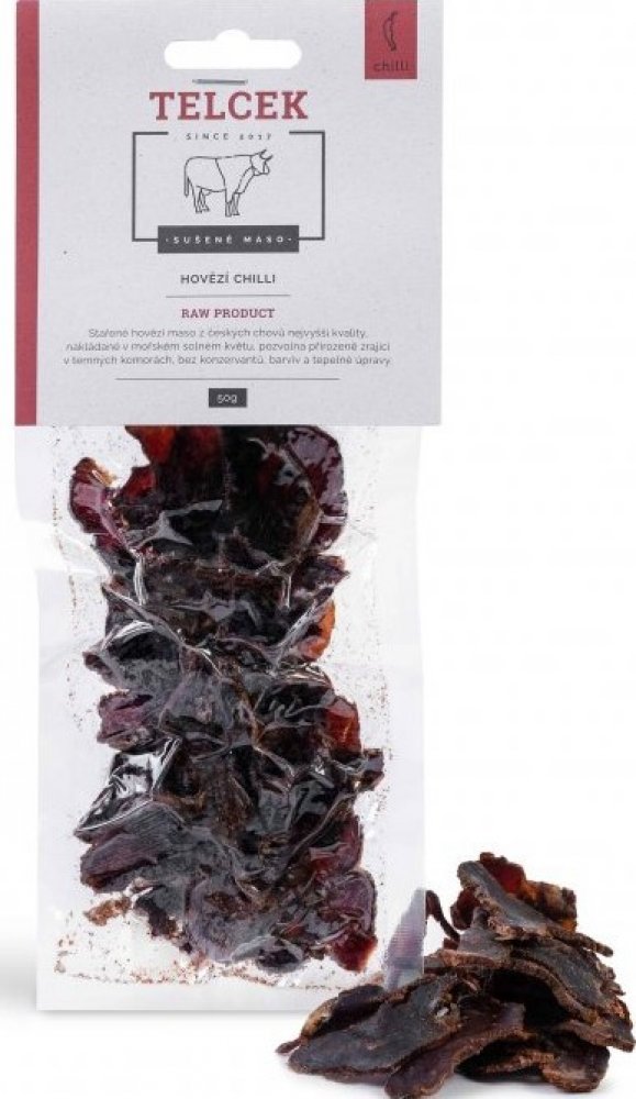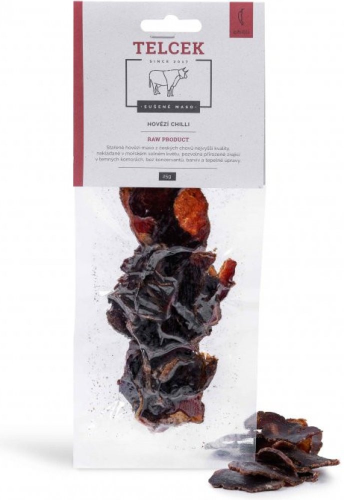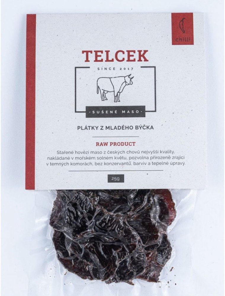 Na rozdíl od většiny ostatních produktů tohoto typu, neurychlujeme proces zrání masa tepelnou úpravou, což spolu s volbou mladých zvířat, pečlivým výběrem částí masa a umožňuje zachovat šťavnatost a měkčí konzistenci. Tím, že v žádné fázi výroby nepoužíváme jakékoli chemické konzervanty a tepelně ho neupravujeme, splňuje TELCEK klasifikaci RAW FOOD a je báječnou delikatesou.