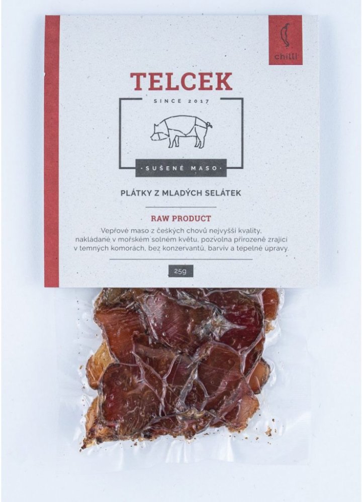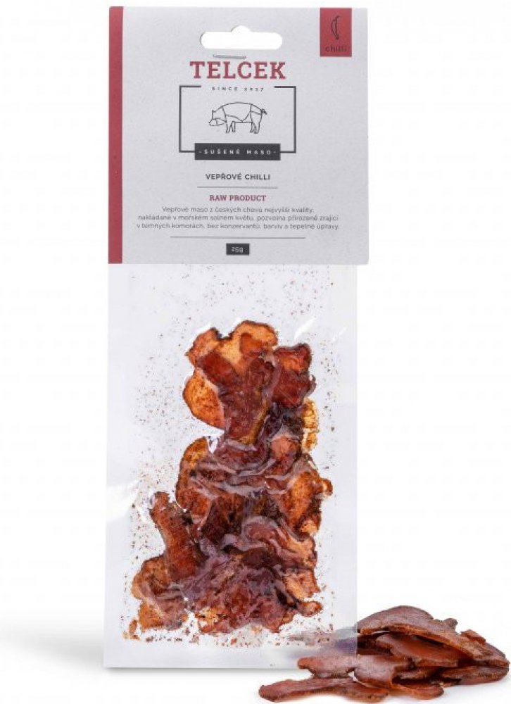Na rozdíl od většiny ostatních produktů tohoto typu, neurychlujeme proces zrání masa tepelnou úpravou, což spolu s volbou mladých zvířat, pečlivým výběrem částí masa a umožňuje zachovat šťavnatost a měkčí konzistenci. Tím, že v žádné fázi výroby nepoužíváme jakékoli chemické konzervanty a tepelně ho neupravujeme, splňuje TELCEK klasifikaci RAW FOOD a je báječnou delikatesou.