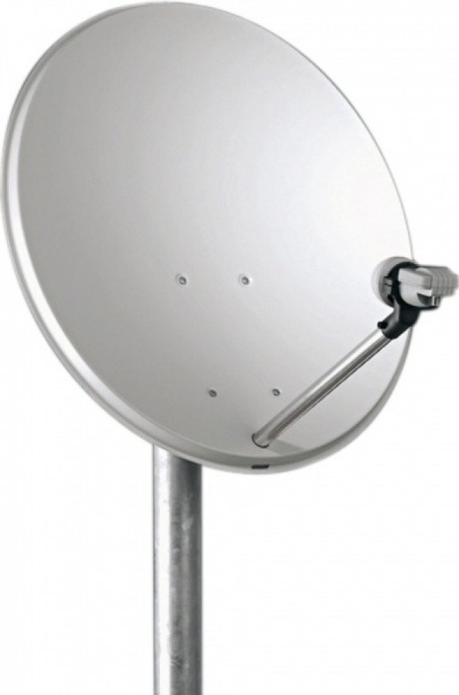 Kvalitní offsetová parabolická anténa od výrobce TeleSystem vhodná pro rychlou montáž s logem TelevizniCentrum.cz.