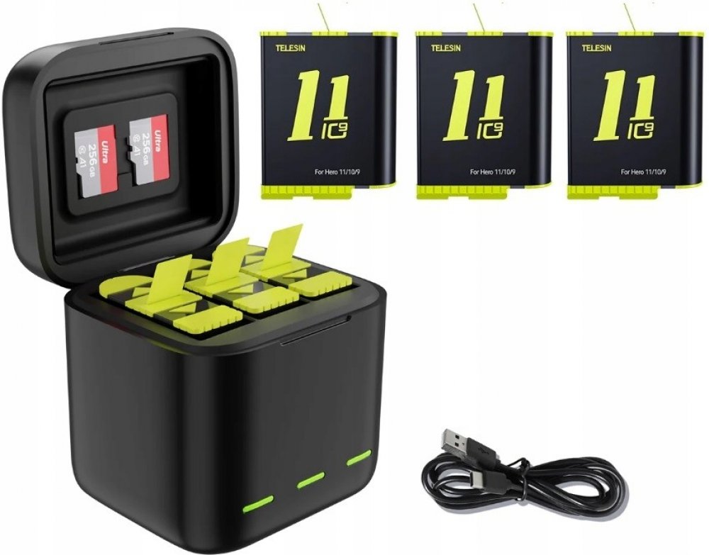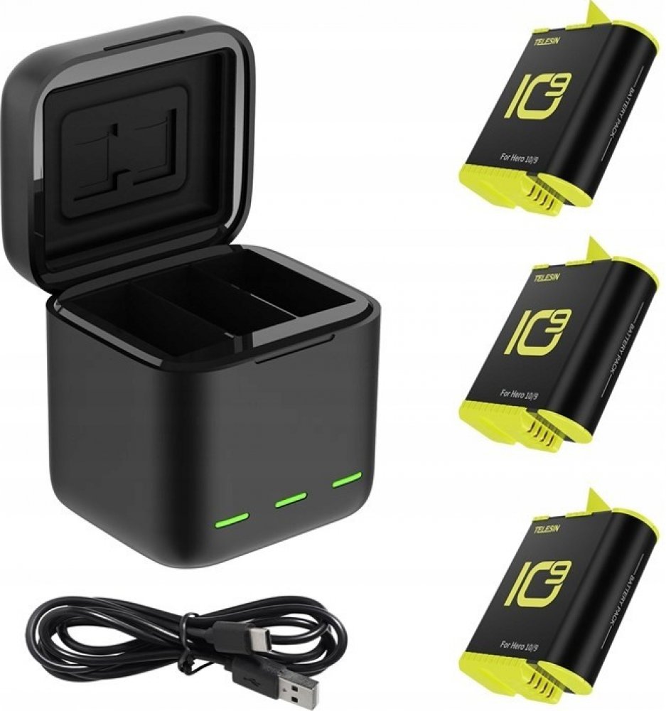Telesin 3-slot nabíječka + 3 baterie set pro GoPro Hero 9/10/11 GP-BnC-902-B