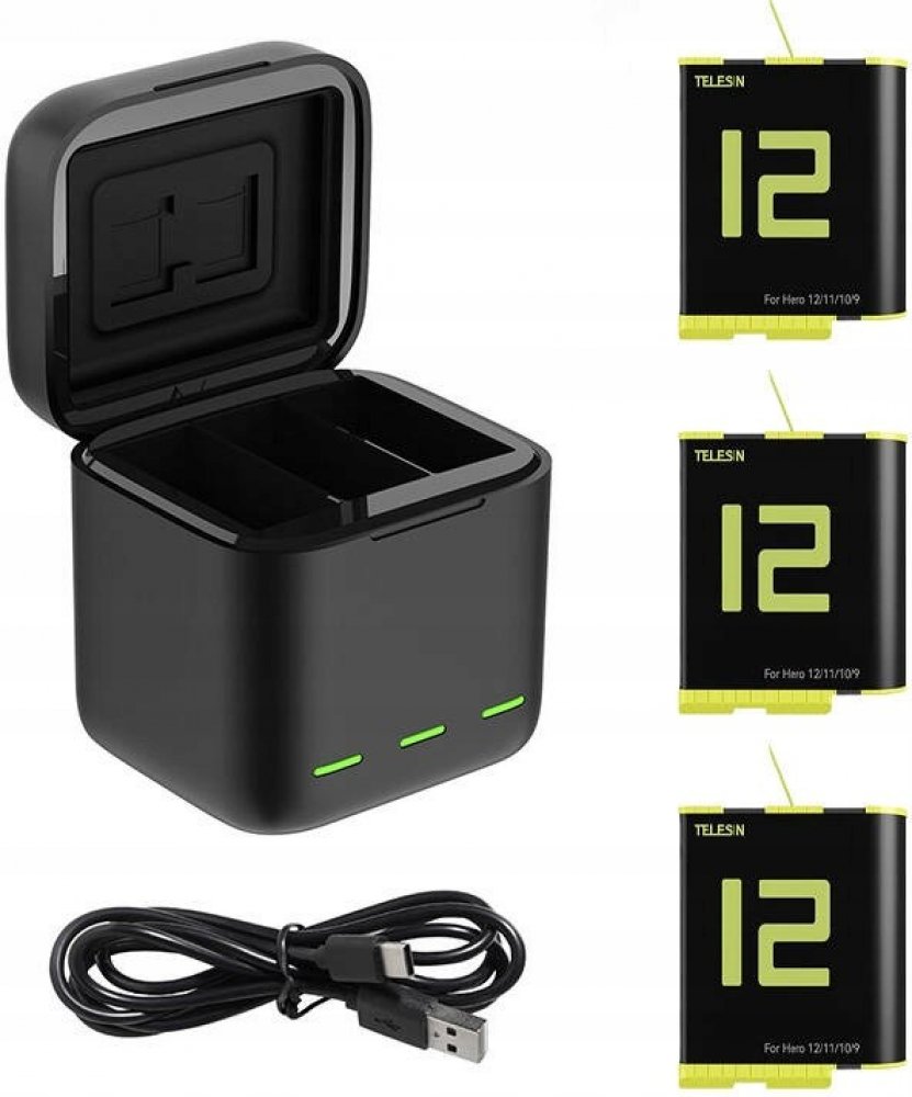 3 nabíjecí baterie pro GoPro Hero 9/10/11/12 od Telesin.