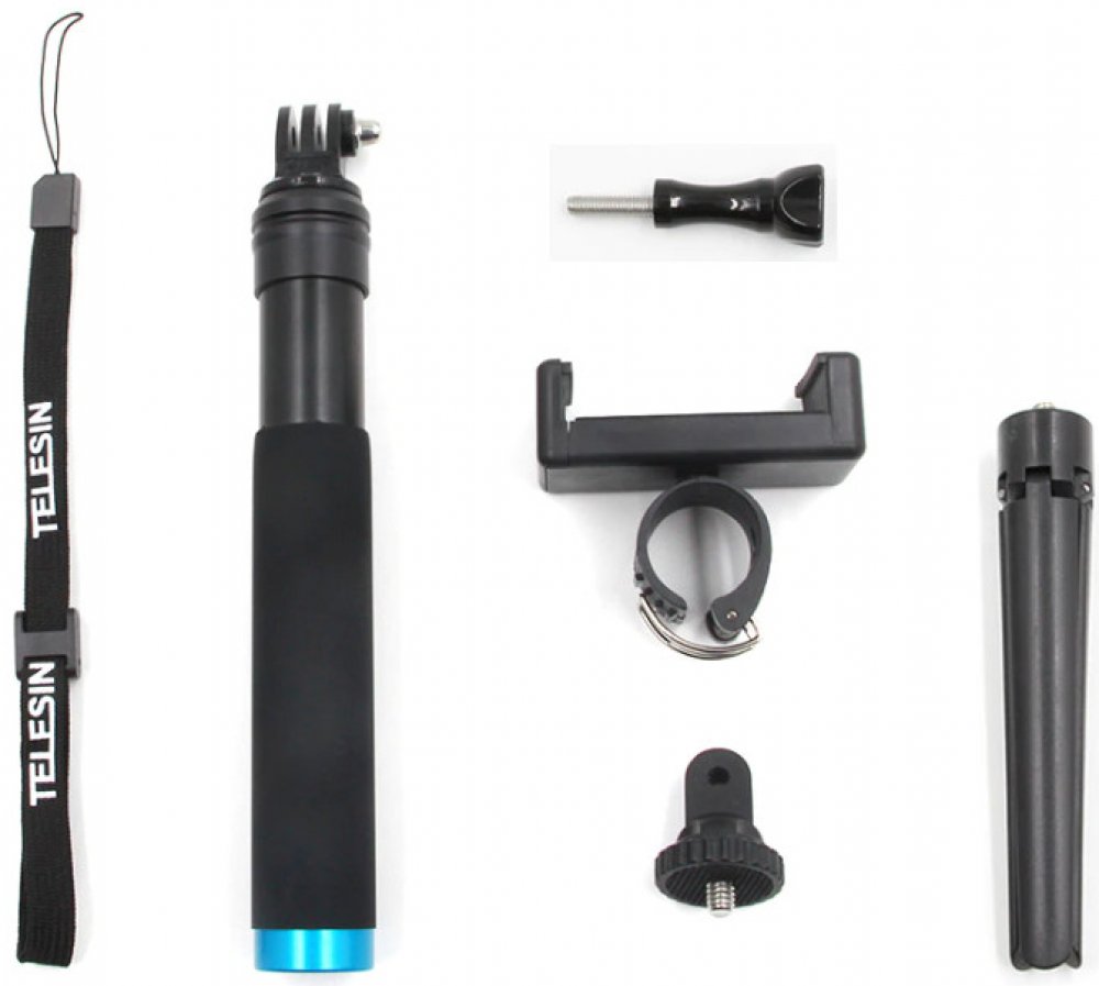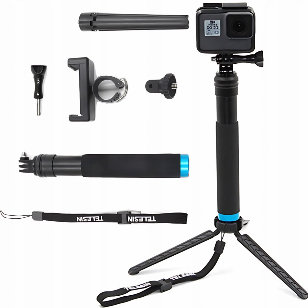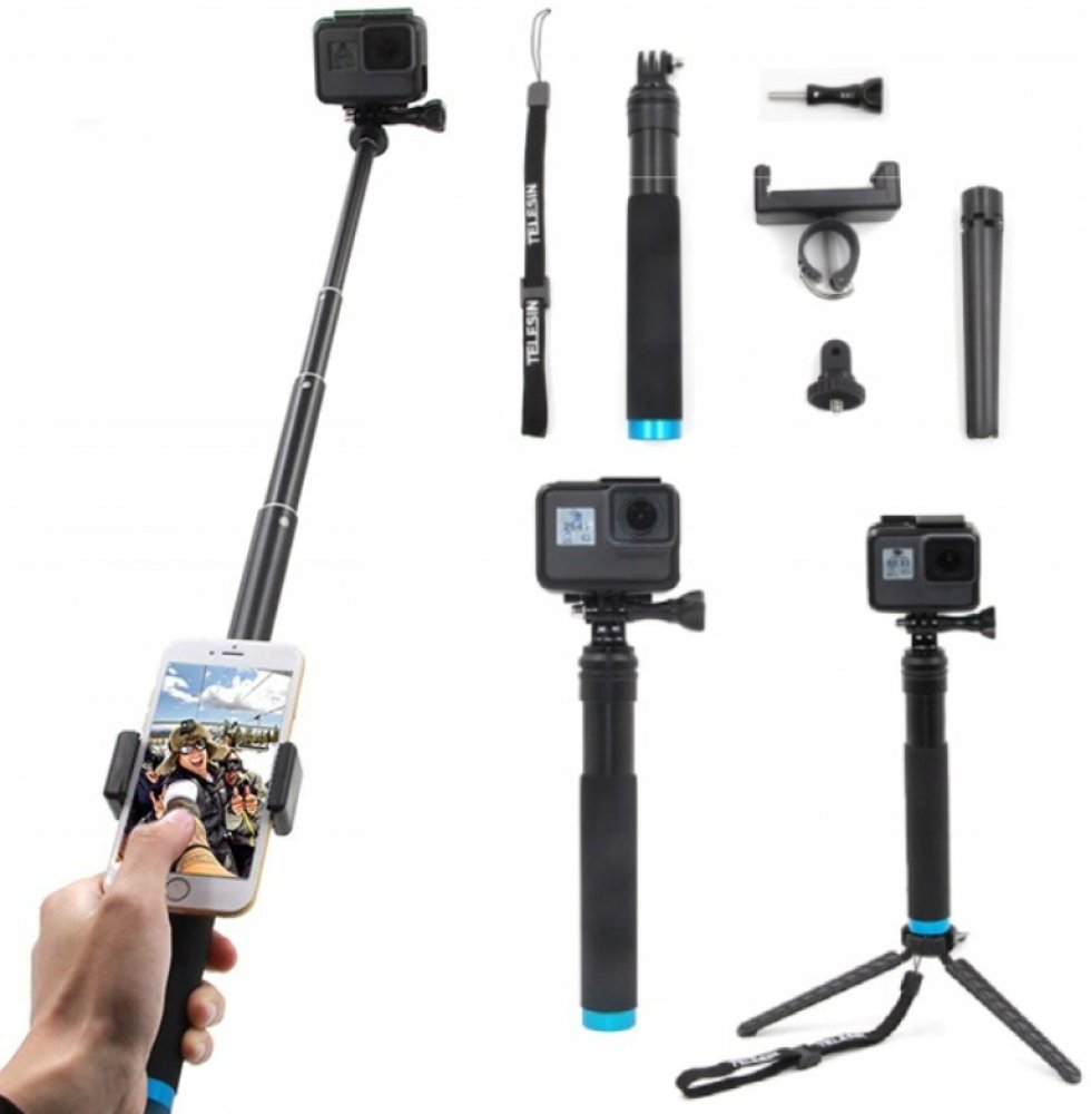 Telesin nastavitelná délka hliníkové slitiny selfie stick vám dává ještě více možností pro nahrávání pomocí sportovní kamery nebo telefonu. Protiskluzová rukojeť je velmi pohodlná. Vyniká také svou značnou trvanlivostí a je neuvěřitelně kompaktní, když je složen. Dodaný stativ umožňuje používat toto praktické příslušenství také jako stativ.