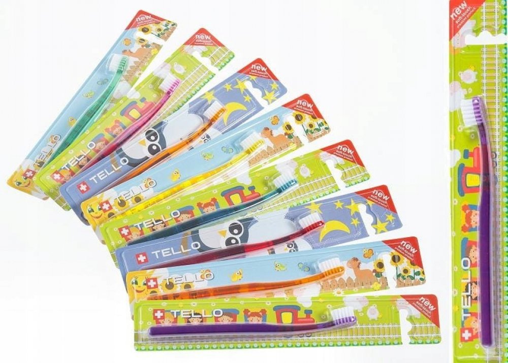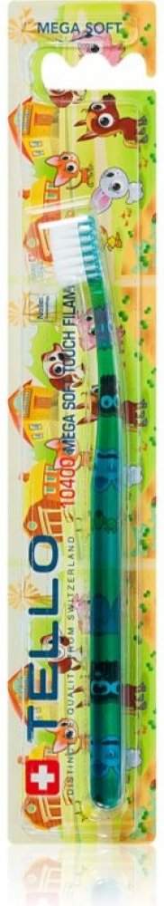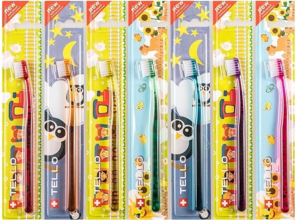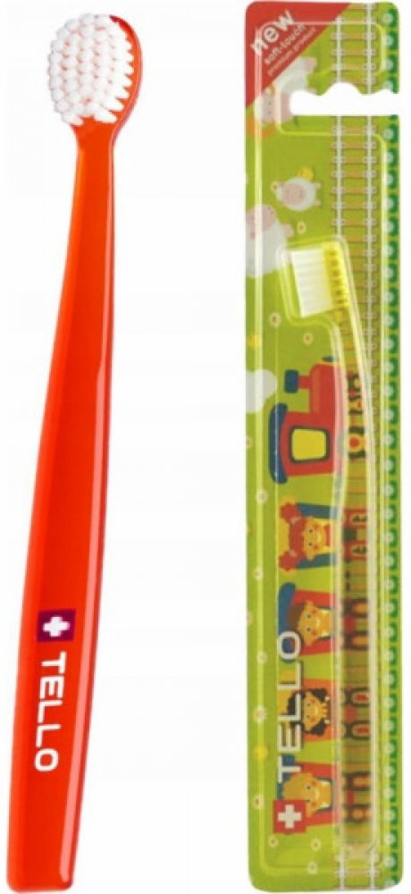 TELLO KIDS 10400 je extra jemný dětský zubní kartáček, 10400 Nollex vláken o průměru 0,10 mm ( každé vlákno se na konci dělí na další 4 ) efektivně a zároveň šetrně čistí dětské zoubky, díky jemným vláknům nepoškozuje dásně, má malou oválnou hlavu, kterou se jednoduše dostanete i do hůře přístupných míst, ergonomická rukojeť má oválný tvar, je vyrobena z průhledného PET v 7 různých barvách s bílým...