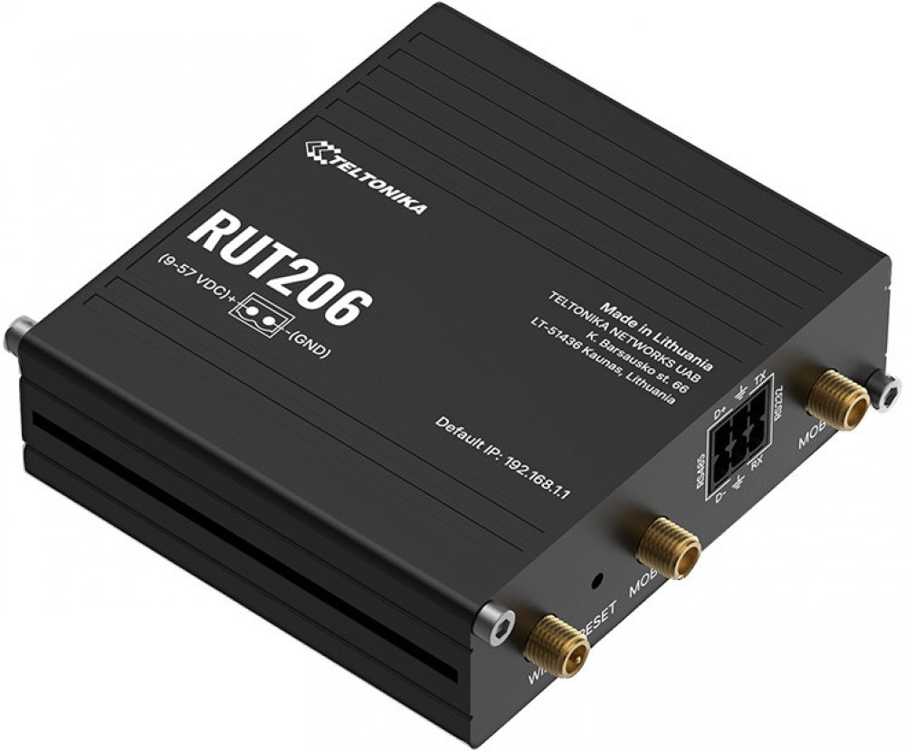 Ethernet WAN:AnoDSL WAN:NeSlot na SIM kartu:AnoKompatibilita s 3G/4G USB modemem:AnoTyp připojení WAN:RJ-45Wi-fi pásmo:Jednopásmový (2,4 GHz)Wi-Fi standard:Wi-Fi 4 (802.11n)Maximální přenosová rychlost dat přes WLAN:300 Mbit/sStandardy Wi-Fi:802.11b, 802.11g, Wi-Fi 4 (802.11n)Připojení na síť Ethernet:AnoTyp rozhraní ethernetu LAN:Fast EthernetPřenosová rychlost sítě Ethernet:10,100 Mbit/sTechnologie kabeláže:10/100Base-T(X)Plně duplexní režim:AnoAuto MDI/MDI-X:AnoGenerace mobilní sítě:4GPočet portů Ethernetu (RJ-45):2USB port:AnoRS-485 porty:1Porty RS-232:1Správa prostřednictvím webového rozhraní:AnoWebový průvodce nastavením:AnoTlačítko reset:AnoPodpora DMZ:AnoTyp produktu:Průmyslový směrovačBarva:ČernáZákladní materiál:HliníkKód mezinárodní ochrany (IP):IP30Kontrolka:AnoLED indikátory:LAN, LTE, Výkon, Status, WANStručný návod k instalaci:AnoStručný návod:AnoKonstrukce antény:ExterníPočet antén:3Zabudovaný procesor:AnoVýrobce procesoru:MediaTekTakt procesoru:580 MHzPočet jader procesoru:1Vnitřní paměť:128 MBTyp vnitřní paměti:DDR2Paměť flash:32 MBMožnost aktualizace firmwaru:AnoTyp zdroje:DCPodpora napájení po Ethernetu (PoE):AnoProvozní rozsah teplot (T-T):-40 - 75 °CRozsah teplot při skladování (T-T):-40 - 75 °CDoporučená provozní relativní vlhkost:10 - 90%Rozsah relativní vlhkosti při skladování (H-H):10 - 90%Šířka:83 mmHloubka:83 mmVýška:25 mmHmotnost:132 g Teltonika · Router · RUT206· Kompakter-4G/LTE Router (RUT206010000) Výrobce: Teltonika Skupina produktů: Průmyslové sítě Typ produktu: Směrovač Barva: černá Lieferumfang: RUT206 router, 2-pólová svorkovnice, 2X3PIN konektor, 1 ... Standard mobilní komunikace 4G (LTE): ano Podpora WLAN: ano Přístupový bod WLAN: ja Standard WLAN IEEE: standardy IEEE 802.3, IEEE 802.3u, 802.3az, podporuje automatickou... Standard WiFi: WiFi 4 (IEEE 802.11n) Třída ochrany (kód IP): IP30 Připojení k síti: napájení přes Ethernet (PoE) Provozní teplota min.: -40 °C Provozní teplota max.: 75 °C Výška: 25 mm Šířka: 83 mm Hmotnost: 420 g Výška balení: 40 mm Šířka balení: 110 mm Hmotnost balení: 0,166 kg Hrubá hmotnost: 0,166 Teltonika RUT206 - Bezdrátový router - WWAN 2,4 GHz - 3G, 4G, 2G - montáž na DIN lištu, montáž na stěnu, povrchová montáž