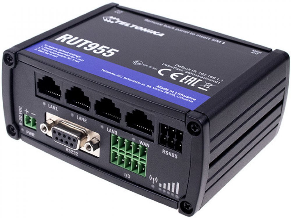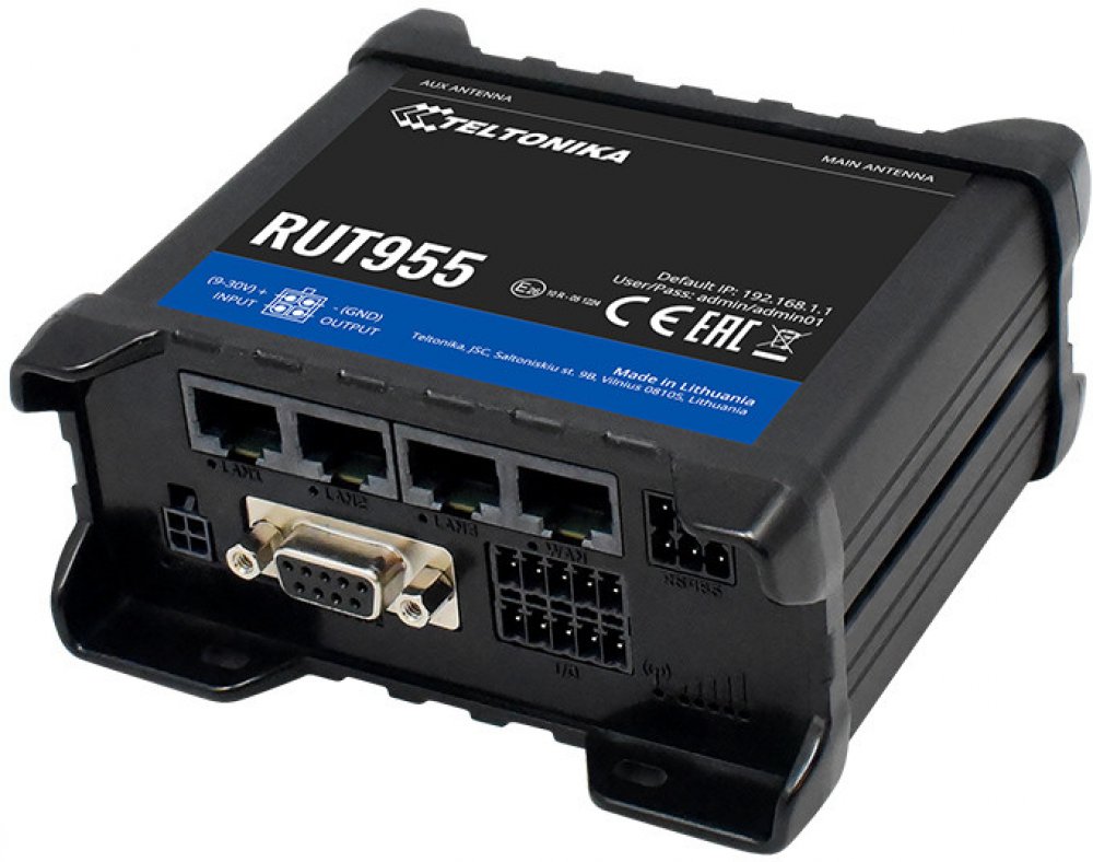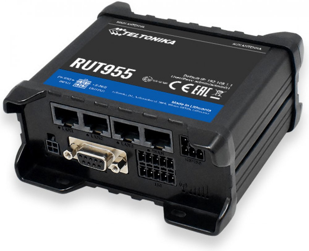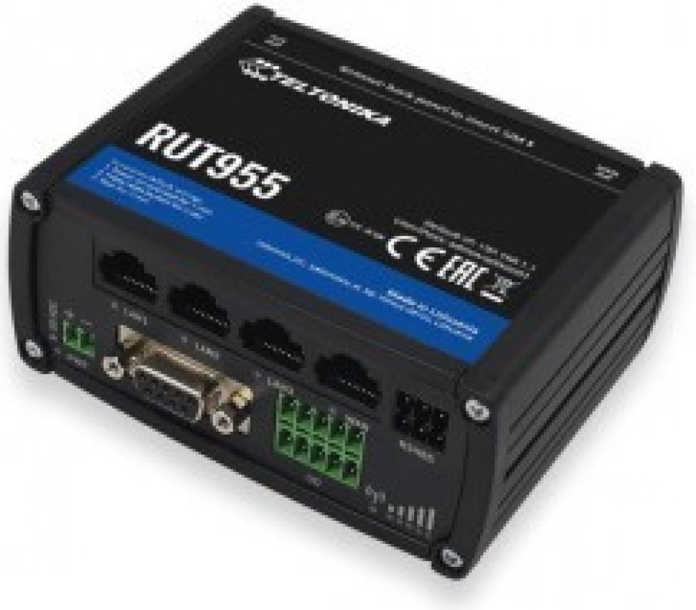 Teltonika RUT955 je vysoce spolehlivý a bezpečný 4G/LTE router s I/O vstupy a výstupy, GPS a RS232/RS485 porty pro profesionální použití. Router se vyznačuje vysokou výkonností a účinností v obtížných pracovních podmínkách celulární komunikace. Je vybaven obvody pro sledování polohy (GPS).