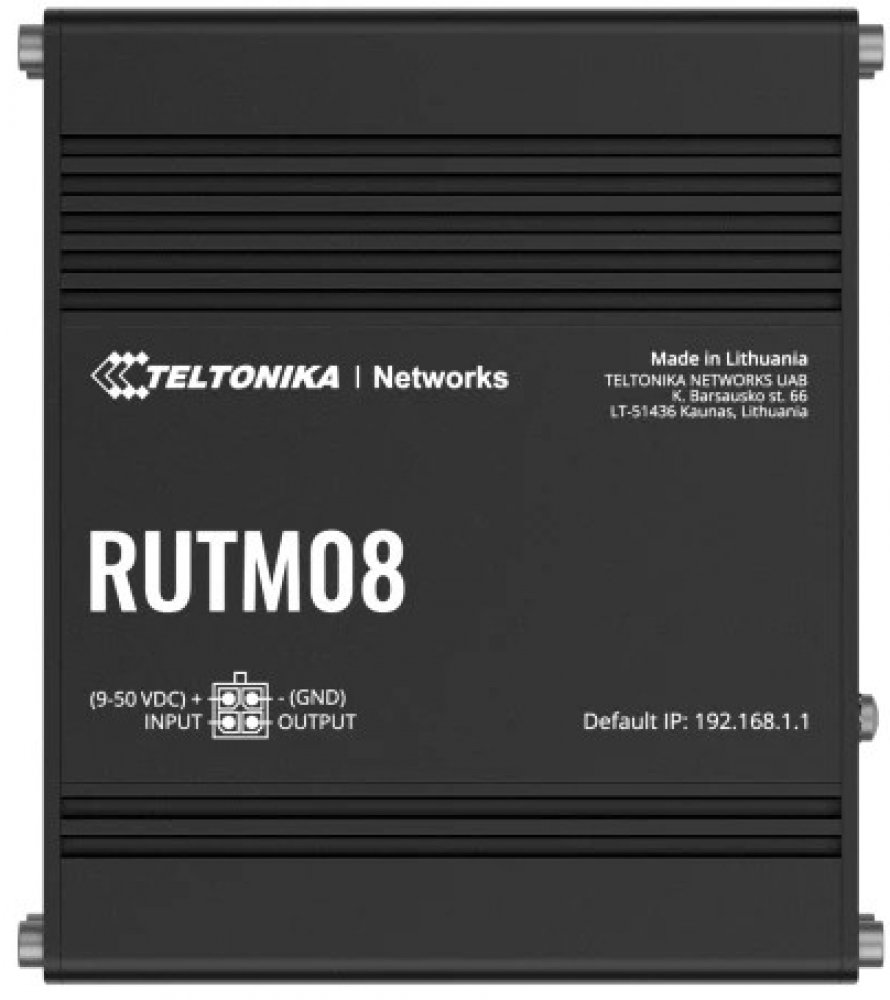 RUTM08 je průmyslový router vyvinutý pro náročné prostředí v průmyslových aplikacích. Router má 4 gigabitové RJ45 porty, které slouží pro spojení mezi koncovými body. RUTM08 podporuje až 128 "tag/port-based