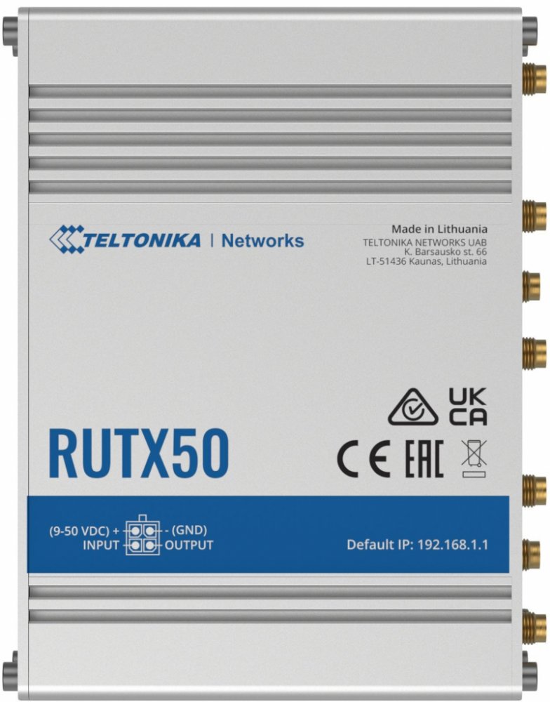 Podrobnější informace naleznete v přiloženém datasheetu, letáku nebo na stránce wiki.teltonika-networks.com/view/RUTX50.