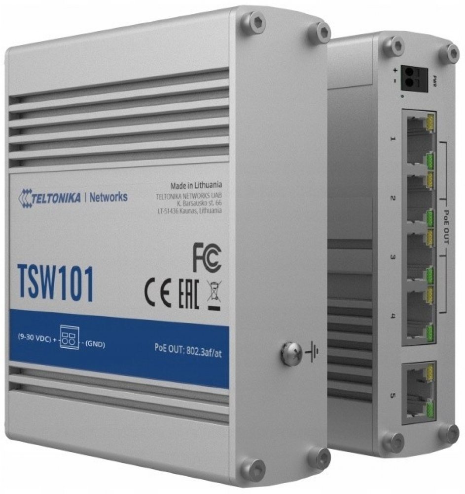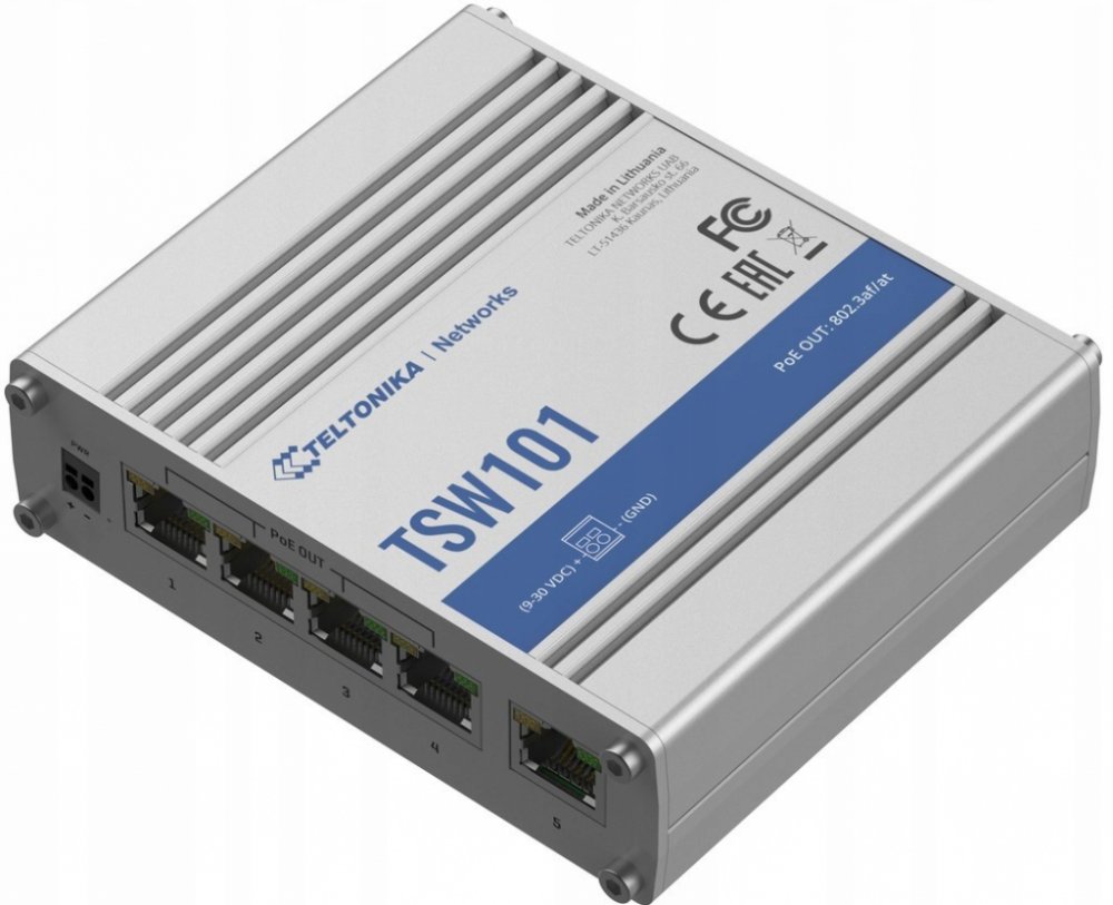 Přepínač známý jako switch je funkční síťové zařízení propojující zařízení či jiné síťové prvky. Hodí se k zapojení síťového provozu. Teltonika TSW101 byl navržen k instalaci na pracovní desku anebo přidělání na zeď. Nabízený model zaujme přepínací kapacitou 80 Gb/s. Switch je opatřen 5 × RJ-45 portů, které jsou určeny k propojení se síťovými prvky. Technologie 10/100/1000Base-T umožní přenášet soubory až při rychlosti 1000 Mbit/s. Rozměry switche byly stanoveny na 115 × 95 × 32 mm. Přístroj Teltonika také pracuje s technologií PoE, jejíž zásluhou lze napájet i přivádět signál ke koncovým zařízením jen pomocí jediného LAN kabelu. Switch váží 384 g. Podstatné parametry switche Teltonika TSW101 Switch k propojení koncových zařízení i dalších uzlů Přepínací kapacita 80 Gb/s Byl osazen 5 × RJ-45 portů Switch Teltonika je určený na pracovní plochu nebo na zeď Podpora technologie PoE (Power over Ethernet)