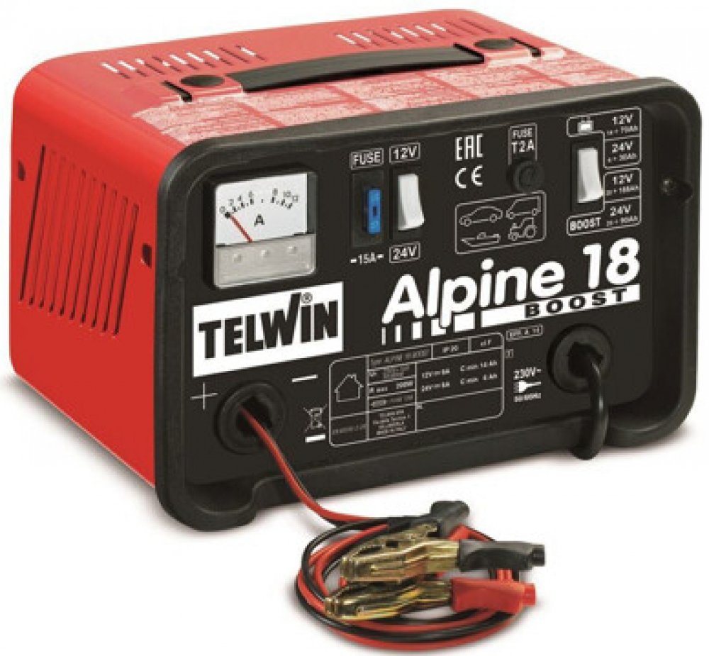 Nabíječka Telwin Alpine 18 Boost je určena k nabíjení olověných baterií s elektrolytem. Jednoduchým přepnutím tlačítka dokážete snadno přecházet mezi režimem pro nabíjení 12 V baterií a 24 V baterií. Vysoká kapacita akumulátoru v obou režimech zaručuje dlouhou výdrž nabíječky. V 12 V režimu je kapacita 14/185 Ah a v režimu 24 V má celkovou kapacitu 6/90 Ah. Nabíjecí proud 14/9 A (12 V) a 8/5 A (24 V) zaručuje rychlé a spolehlivé nabití baterie. Příkon nabíječky je 200 W a napětí 230 V pro efektivní nabíjení. Nabíječka Telwin Alpine 18 Boost je také vybavena ampérmetrem pro snadné čtení proudu dodávaného nabíjenému akumulátoru. Díky jedinečné funkci Boost&Go můžete urychlit proces nabíjení a slouží i pro snadné startování vozidla. K zapnutí funkce stačí pouhý stisk tlačítka. S nabíječkou Telwin Alpine 18 Boost se nemusíte bát přetížení, dokonce se nemusíte obávat ani přepólování kvůli ochranným funkcím nabíječky.