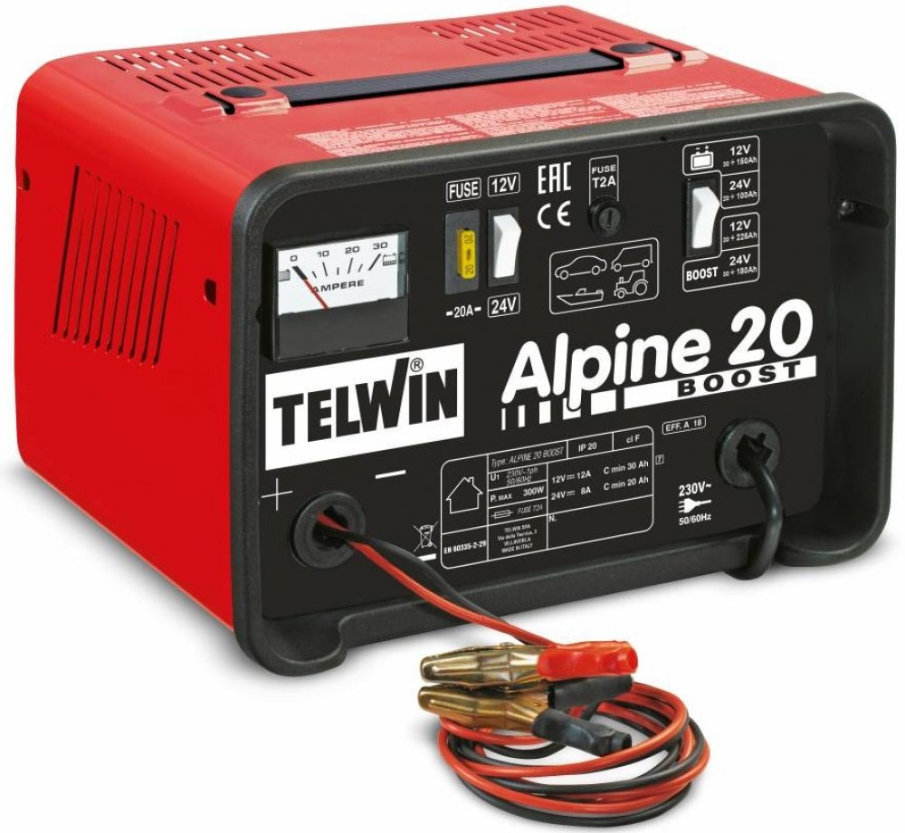 Mikroprocesorový usměrňovač T-CHARGE 20 Inteligentní, přenosná nabíječka pro nabíjení olověných a gelových baterií 12 a 24 voltů. Jednofázové napájení. Elektronicky řízený proces nabíjení baterie. Automatické vypnutí po dosažení požadovaného napětí na baterii a automatické obnovení nabíjení po poklesu napětí na baterii. Kontrolky: přetížení v důsledku opačné polarity nebo zkratu výstupních kabelů,...