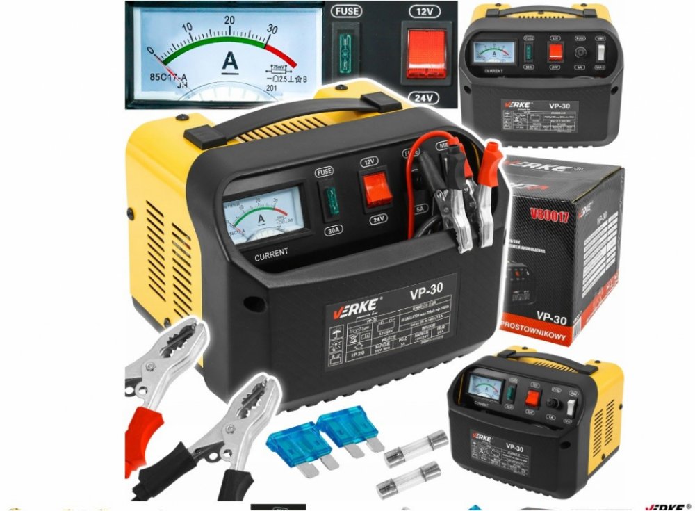 Mikroprocesorový usměrňovač T-CHARGE 20 Inteligentní, přenosná nabíječka pro nabíjení olověných a gelových baterií 12 a 24 voltů. Jednofázové napájení. Elektronicky řízený proces nabíjení baterie. Automatické vypnutí po dosažení požadovaného napětí na baterii a automatické obnovení nabíjení po poklesu napětí na baterii. Kontrolky: přetížení v důsledku opačné polarity nebo zkratu výstupních kabelů, probíhá nabíjení, baterie nabitá. Ochrana před zkratovými póly, přetížením a opačnou polaritou. Tři stupně nabíjecího proudu. Zvýšený stupeň ochrany - odolný vůči stříkající vodě. Snížené rozměry a hmotnost zařízení. Cena zařízení s: tři typy výstupních kabelů: svorky na kleště, kroužkové svorky, zástrčka zapalovače cigaret.