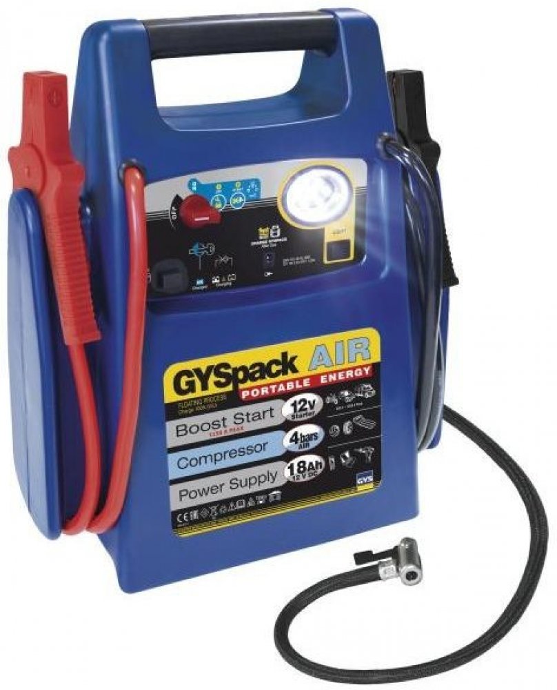 Kompletní se startovací kabely, zástrčkou zapalovače cigaret a nabíječkou.