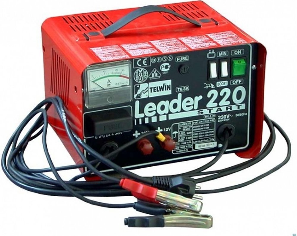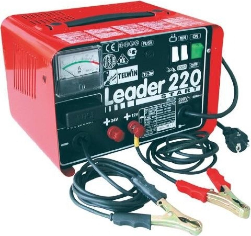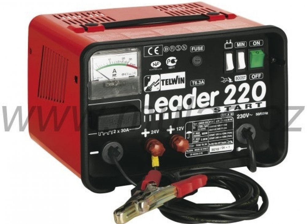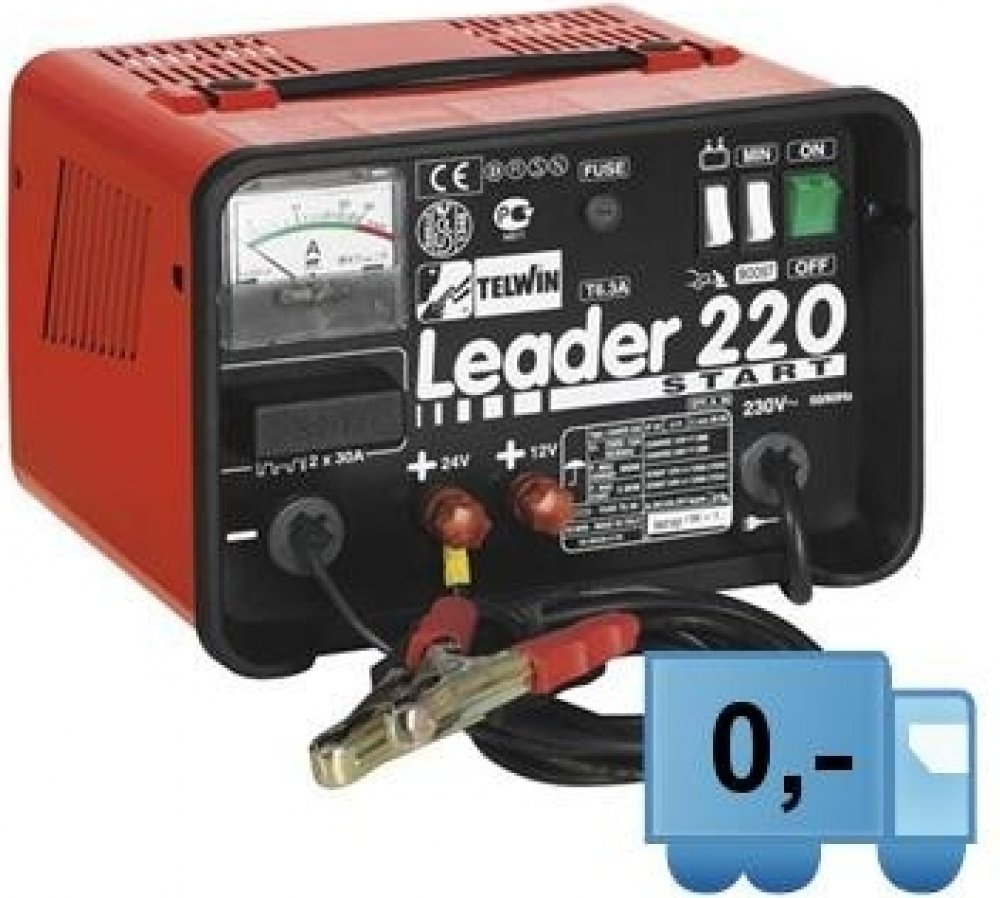 Nabíjecí zdroj se startem Telwin Leader 220 Start, 230V, 0,8/3,6kW, 12-24V, 30A - Kvalitní, přenosný bateriový nabíječ pro všechny typy 12V nebo 24V akumulátorů. Umožňuje normální nabíjení, rychlé nabíjení (boost) apomocný start všem typům vozidlům s benzínovým motorem a s baterií do 100Ah (s 5 min přednabitím). Leader 220 je vybavena ampérmetrem pro kontrolu probíhajicího nabíjení a startu, je oc...