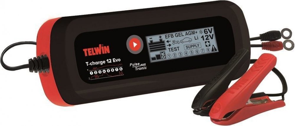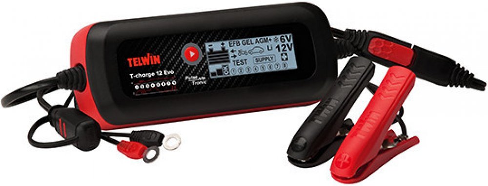 T-Charge 12 EVO je multifunkční pulsní elektronická nabíječka a tester pro klasické, gelové, AGM, MF, PbCa, EFB, Li-ion baterie 6/12V. Funguje jako spolehlivý zdroj při výměně baterií bez přerušení napájení. Má jednoduché použití a okamžité zobrazení parametrů na LCD displeji. Nabíjení a údržba baterií je díky pokročilým funkcím možná i při nízkých teplotách. Nabíječka testuje i alternátor vozidla. Balení obsahuje kabel s očky + kabel se svorkami.