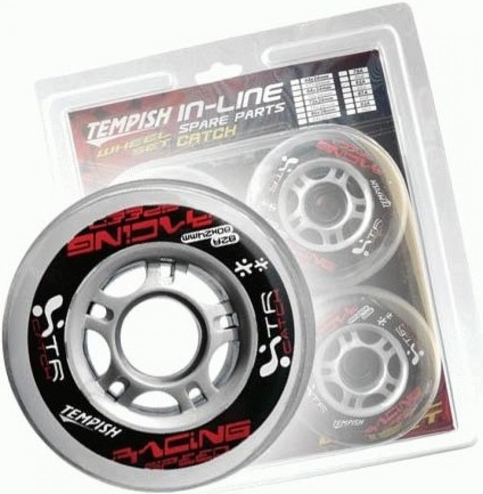 Sada 4 kusů náhradních koleček do inline bruslí Tempish CATCH o velikosti 72 mm. Kolečka s tvrdostí 82 A jsou vyrobena ze speciální směsi PU s malým valivým odporem.