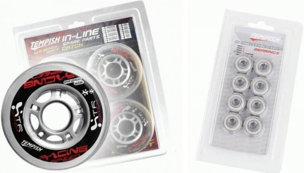 Set produktů za zvýhodněnou cenu. Sada 8 kusů náhradních koleček do in-line bruslí + 16 kusů ložisek. Tempish Catch 80x24 82a Set Wheel