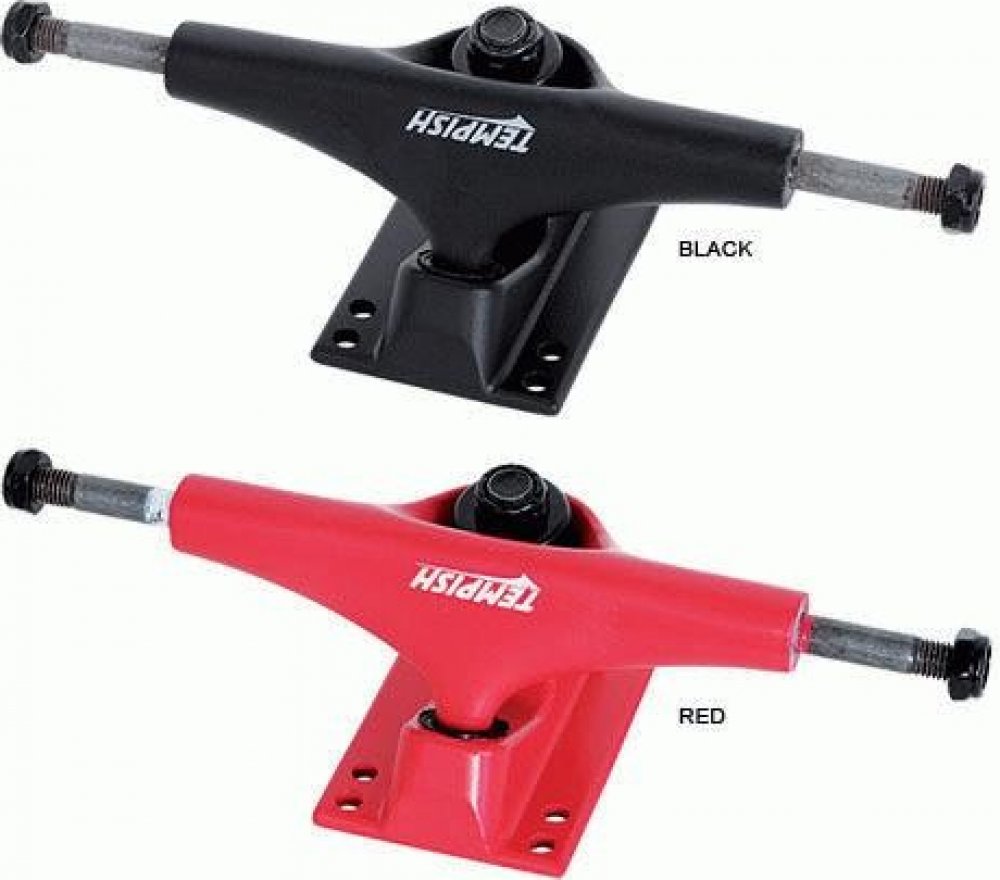 Trucky Tempish, model Heavy Duty AL 7", klasické uchycení čtyřmi šroubky, šířka trucku 7" (18 cm), výška cca 6 cm, v balení dva kusy.