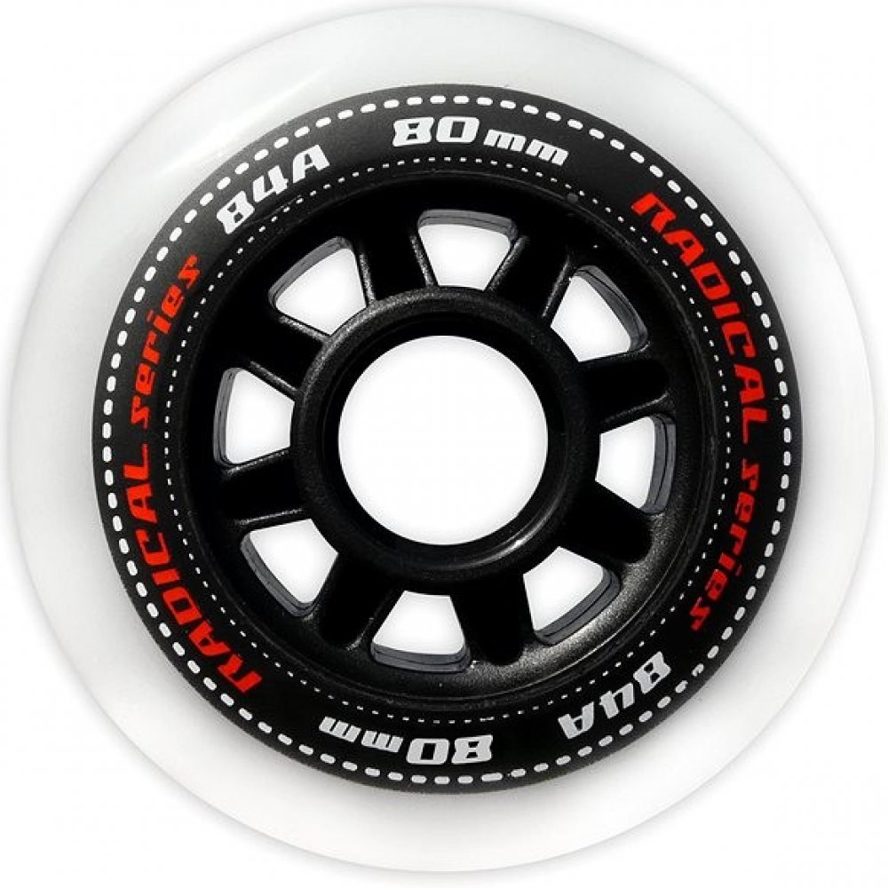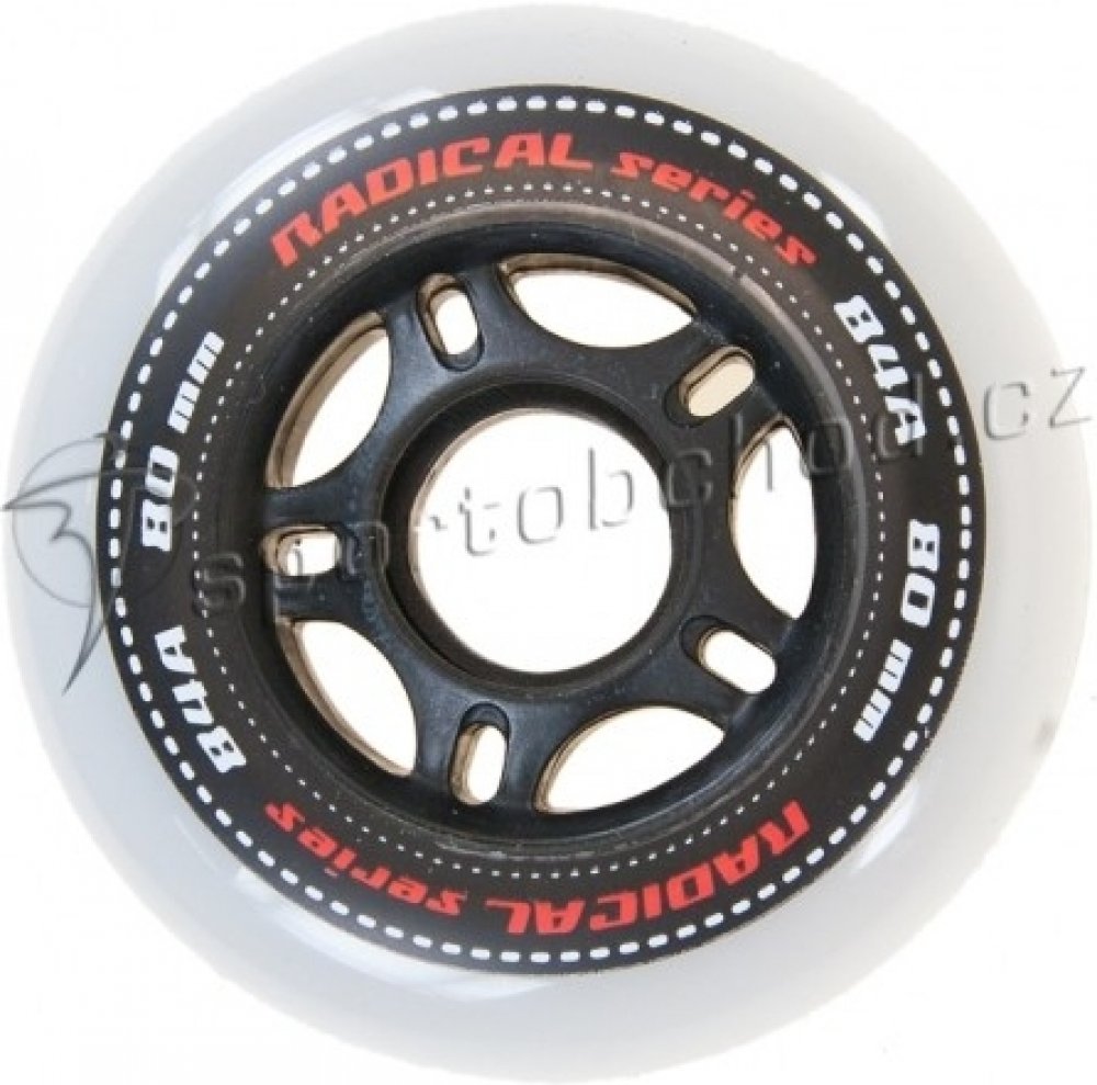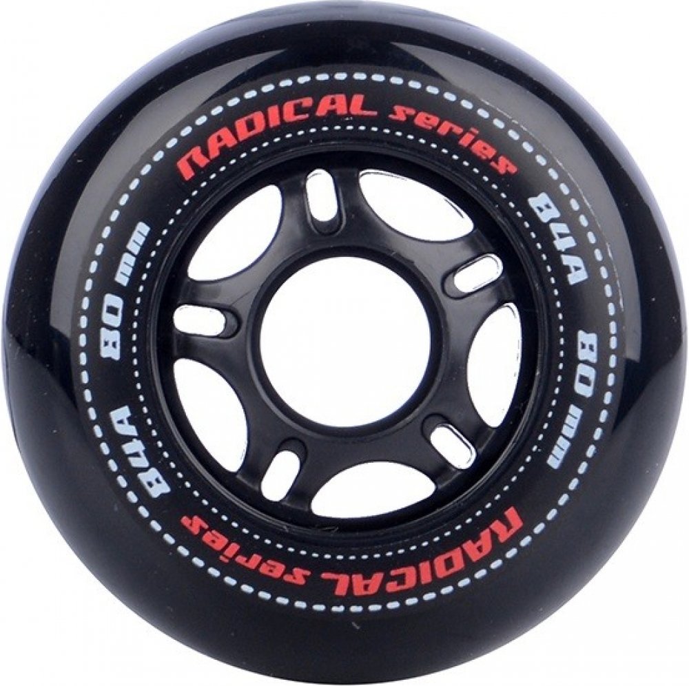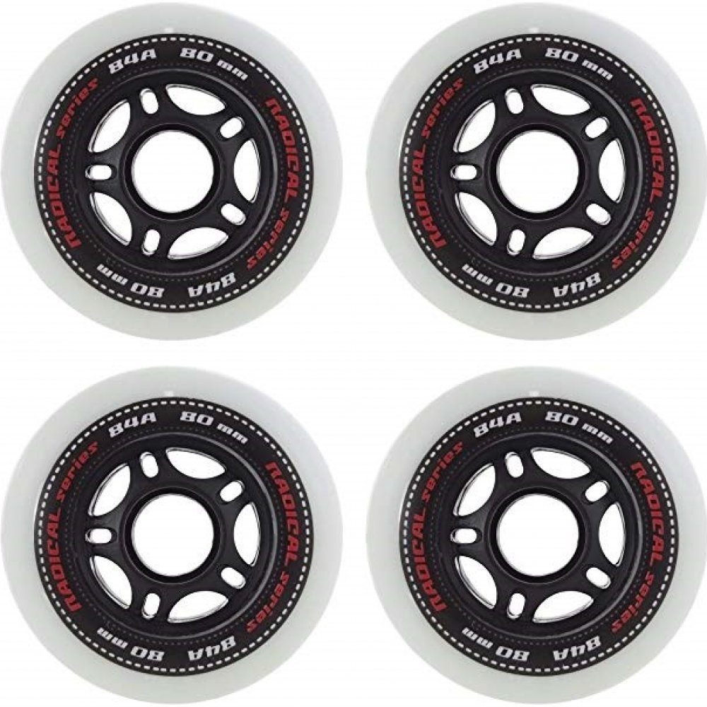 Sada 4 kusů náhradních koleček do in-line bruslí. Řada koleček na kolečkové brusle určená pro rekreační a sportovní až závodní bruslení s extrémně malým valivým odporem, prodlouženou životností, zajišťuje vysoký komfort jízdy. Řada RADICAL je určena na všechny typy asfaltových a betonových povrchů, použitý materiál dobře snáší i méně kvalitní povrchy.