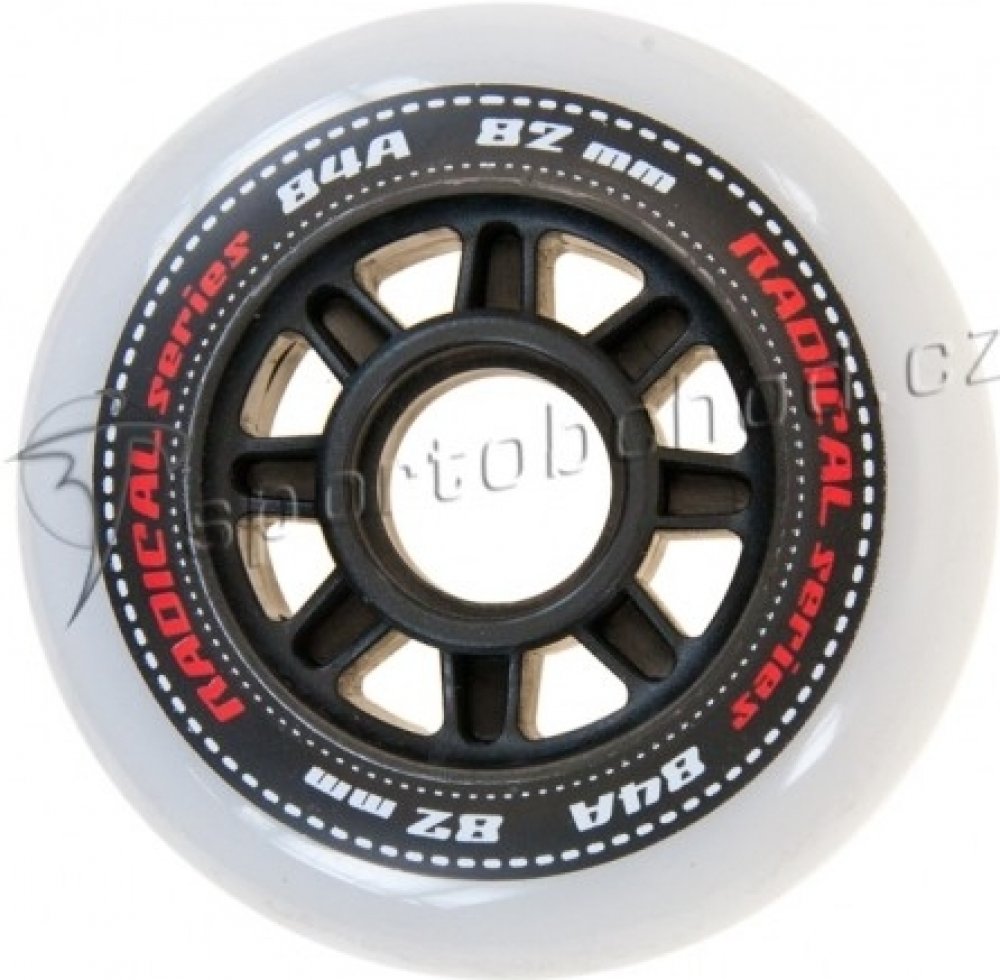 Sada 4 kusů náhradních koleček do in-line bruslí. Řada koleček na kolečkové brusle určená pro rekreační a sportovní až závodní bruslení s extrémně malým valivým odporem, prodlouženou životností, zajišťuje vysoký komfort jízdy. Řada RADICAL je určena na všechny typy asfaltových a betonových povrchů, použitý materiál dobře snáší i méně kvalitní povrchy.