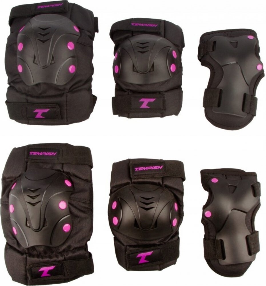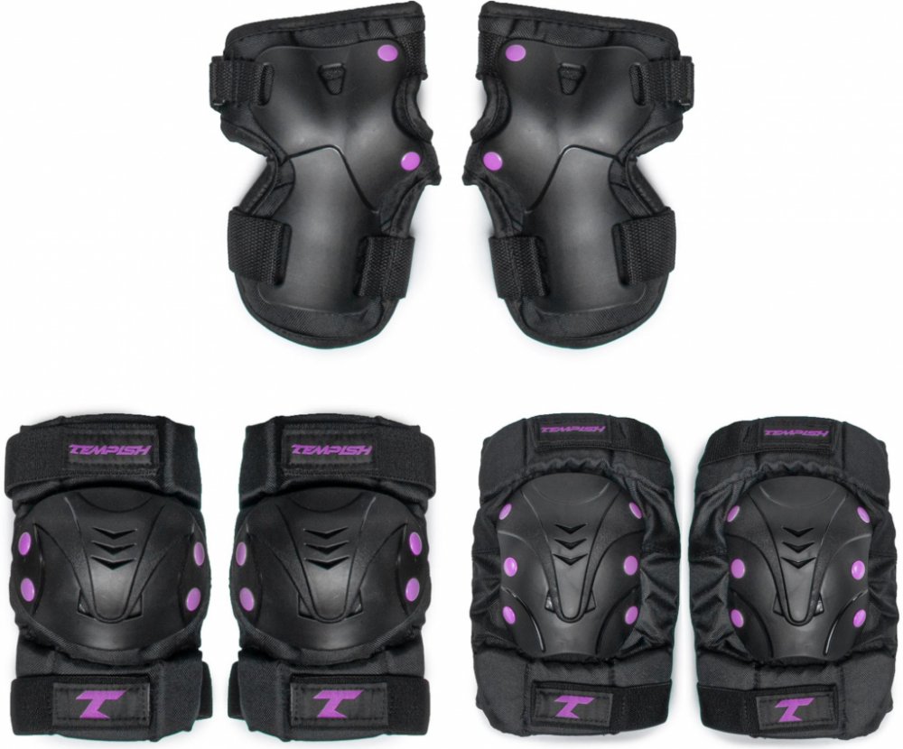 Set se skládá z chrániče zápěstí, kolen a loktů. Chránič zápěstí má plastickou výztuhu, která chrání zápěstí z vnitřní strany proti poranění. Vnitřní část všech chráničů je ušita z jemné textilie, která dobře saje vlhkost (pot) a jemně klouže po kůži. Chránič zápěstí se pevně připevní za pomocí tenčího pásku na dlani a širšího pásku na zápěstí s nášivkou s logem TEMPISH. Plastická skořepina chráničů kolen a loktů je velmi houževnatá a má perfektní anatomický tvar, který zajistí stabilní polohu chrániče, pohodlnou funkci při bruslení a pohybu a vysokou míru ochrany při pádu. K textilní části chrániče je pevně připevněna 3-mi páry nýtů. Textilní část chrániče se skládá ze tří částí: první část je připevněna pomocí elastického pásku ke končetině nad kloubem a pohybuje se společně s ní druhá část chrániče je umístěna přímo na kloubu a chrání jej v případě nárazu třetí část chrániče je připevněna elastickým páskem ke končetině pod kloubem a pohybuje se společně s částí končetiny pod kloubem. Touto konstrukcí je zajištěna velká volnost pohybu a chránič minimálně omezuje pohyb. Uživatel po krátké chvíli přestane vnímat, že nějaký chránič má, neboť se přirozeně přizpůsobuje tak, jak se bruslař pohybuje.