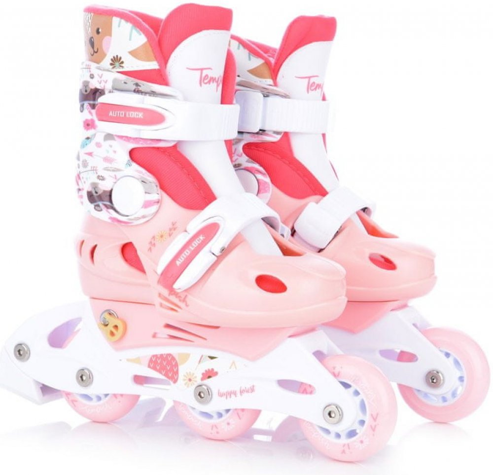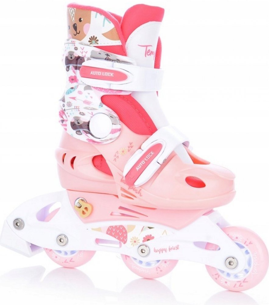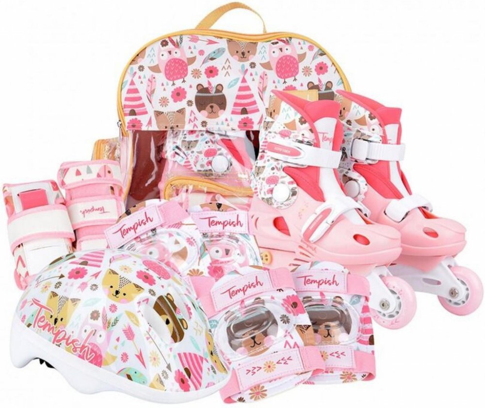 WILD BABY SKATE je dívčí set určen pro začátečníky a rekreační bruslení. Set obsahuje 1 pár kolečkových bruslí, helmu, 3-sadu chráničů (kolena, lokty, zápěstí), vše v praktickém batohu na záda. Brusle mají jednoduchý a pohodlný systém nastavení velikosti. Brusli lze nastavit na 4 velikosti. Kolečkové brusle možno nastavit na stabilnější variantu a to zdvojením zadních koleček, každé balení obsahuj...