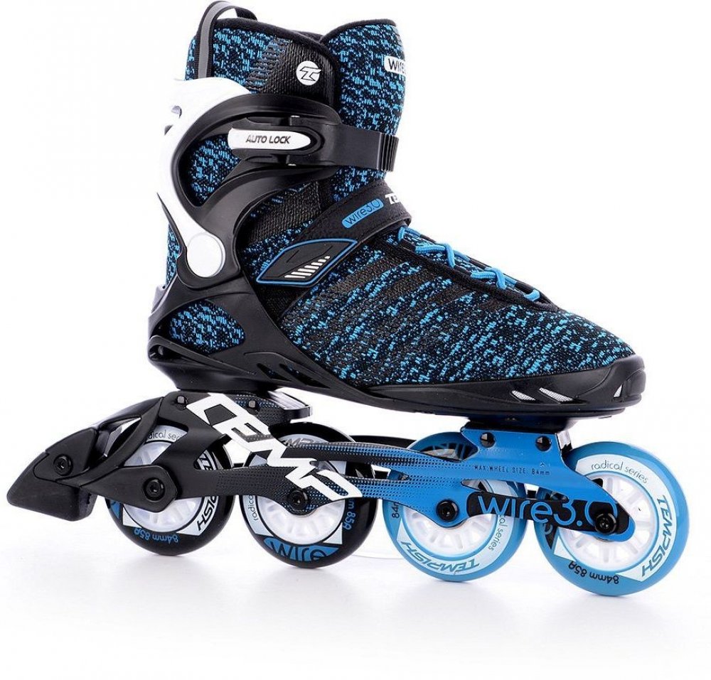 Kolečkové brusle WIRE 3.0 jsou určeny pro rekreační, sportovní fitness a kondiční bruslení, snesou střední až vysokou zátěž a jsou určeny jak pro začínající, tak pro pokročilé a zkušené bruslaře. Skelet brusle je středně vysoký, pohyblivá část nad kloubem je zpevněná a tvořená dvěmi oddělenými částmi. Brusle jsou osazeny kolečky ze serie CATCH, které se vyznačují malým valivým odporem. Tvrdost kolečka je 85A. Šněrování je klasické tkaničkami. Přes nárt je umístěn zpevňující pásek na suchý zip.