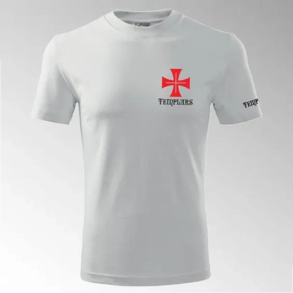 Tričko templářský kříž s potiskem. Design obsahuje nápis Templář na prsu a potisk na levém rameni. Vyrobeno z pohodlné 100% bavlny střední gramáže, tričko s krátkým rukávem je ideální pro každodenní nošení. Kombinace stylu a inspirace templářskou symbolikou z něj činí skvělou volbu pro milovníky historie.