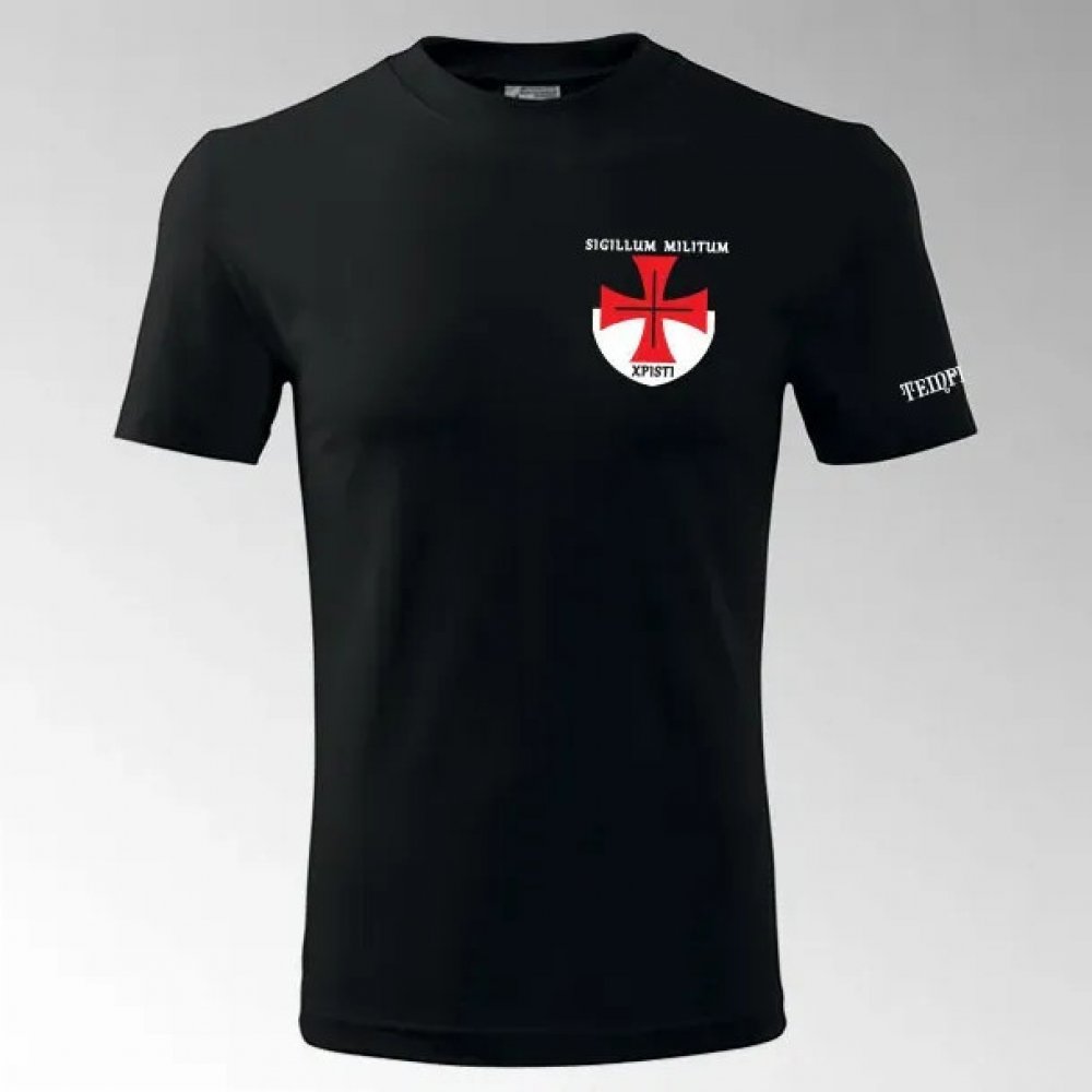 Tričko templářský kříž s potiskem. Design obsahuje templářský erb a nápis na prsu, doplněný potiskem na levém rameni. Vyrobeno z pohodlné 100% bavlny střední gramáže, tričko s krátkým rukávem je ideální pro každodenní nošení. Stylový motiv inspirovaný templářskou symbolikou zaujme každého milovníka historie.