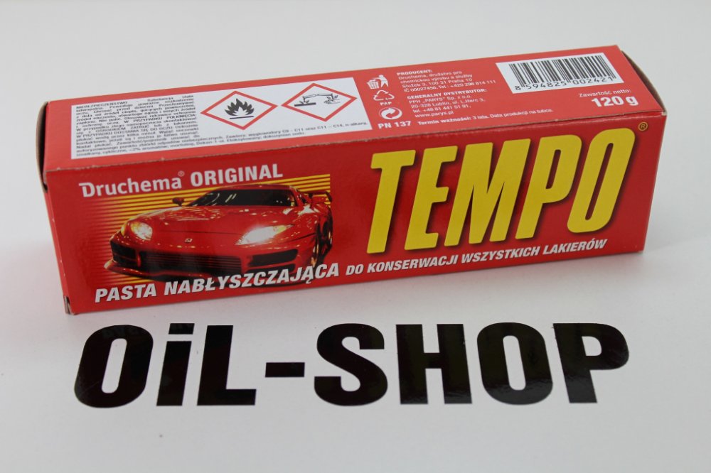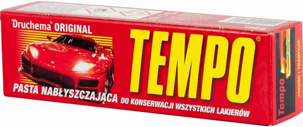 Kvalitní neabrazivní lehce roztíratelný krém, k leštění a konzervaci laků karoserií zejména nových, včetně metalíz. Je vyroben z přírodních a syntetických tvrdých vosků, které dodávají ošetřené karoserii vysoký a trvanlivý lesk. Vodoodpudivost a konzervační schopnost voskového fi lmu na karoserii zvyšuje přísada silikonového oleje. Používá se také jako udržovací prostředek po použití Tempo Pasty....
