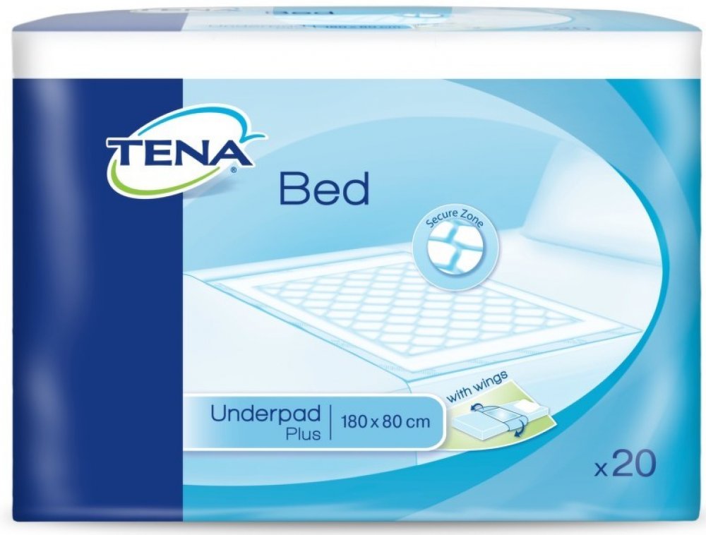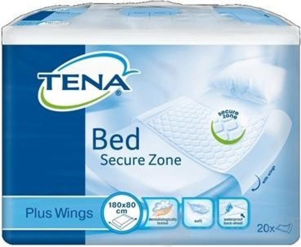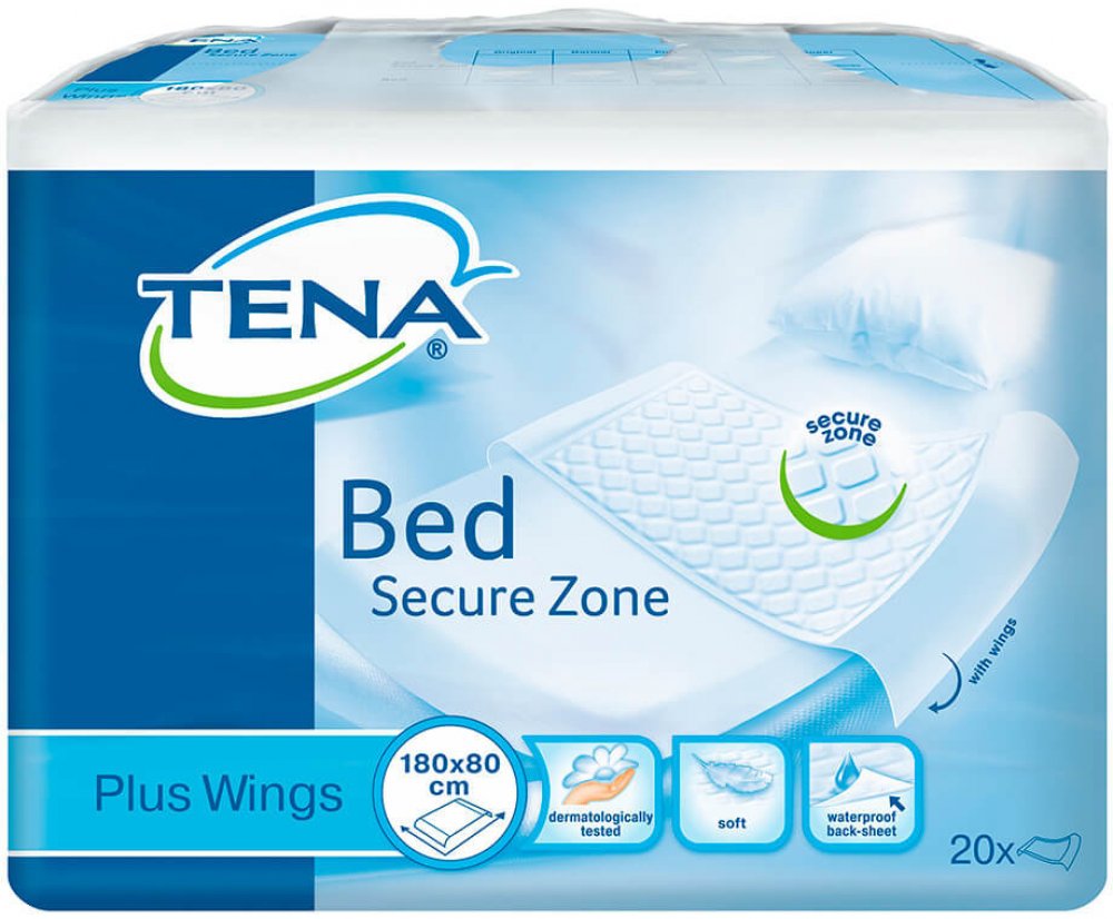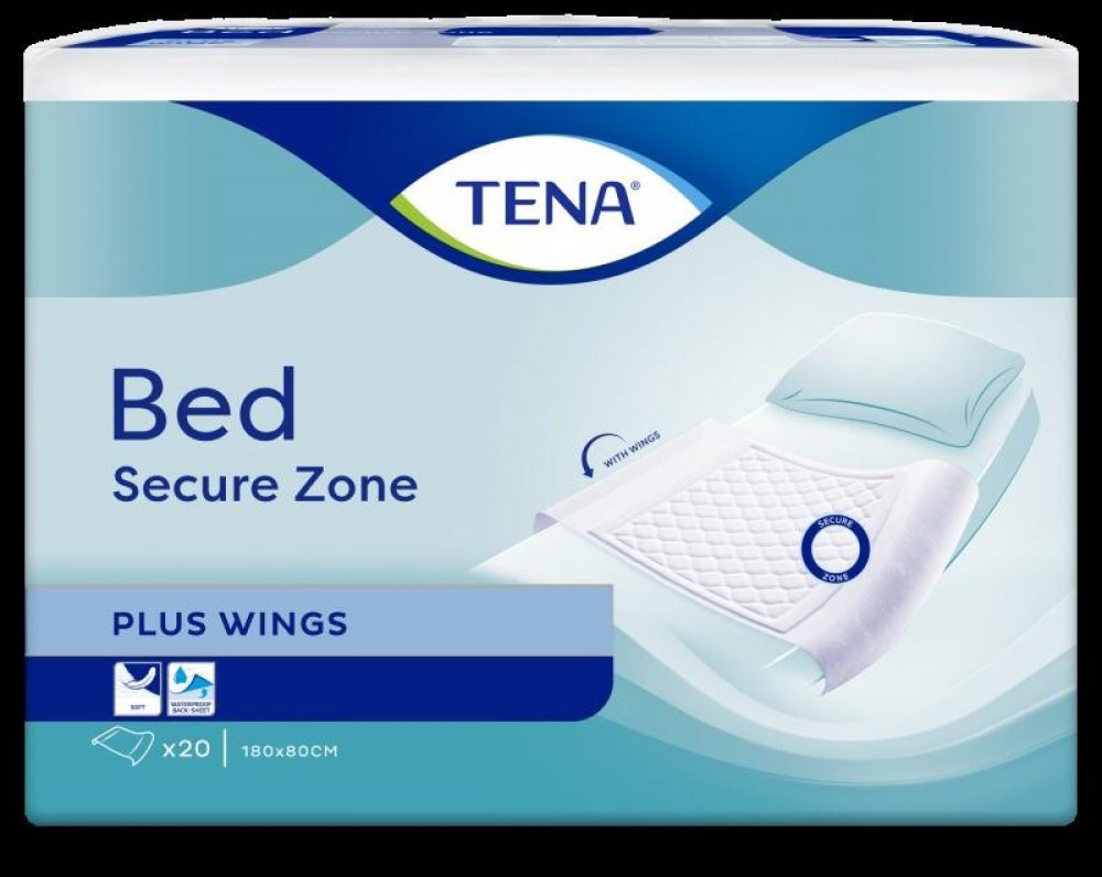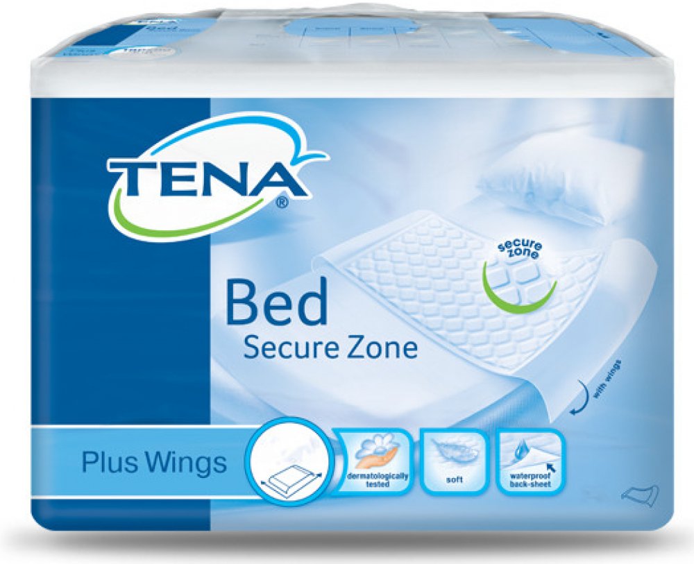 Absorpční podložka TENA Bed Plus Wings se záložkami slouží jako doplňková ochrana postele, křesla či vozíku. při výměně absorpční pomůcky. Díky křidélkům zůstává podložka na svém místě.