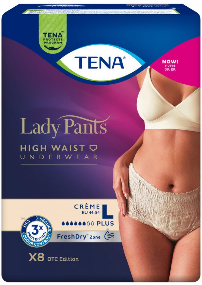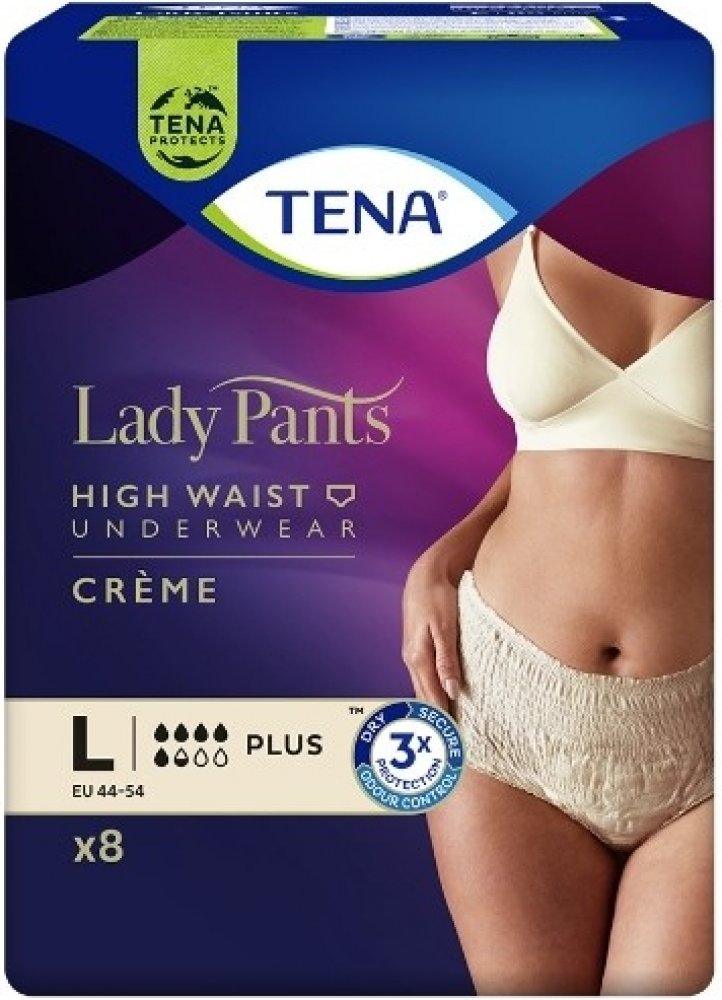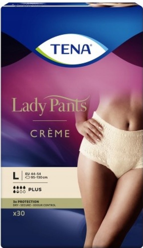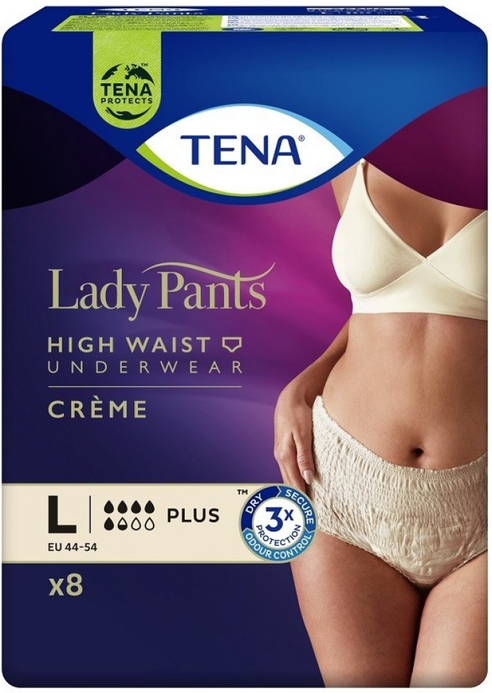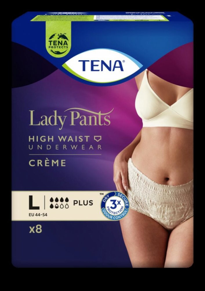 Krémové absorpční kalhotky TENA Lady Pants Creme pro ženy se střední až těžkou inkontinencí.