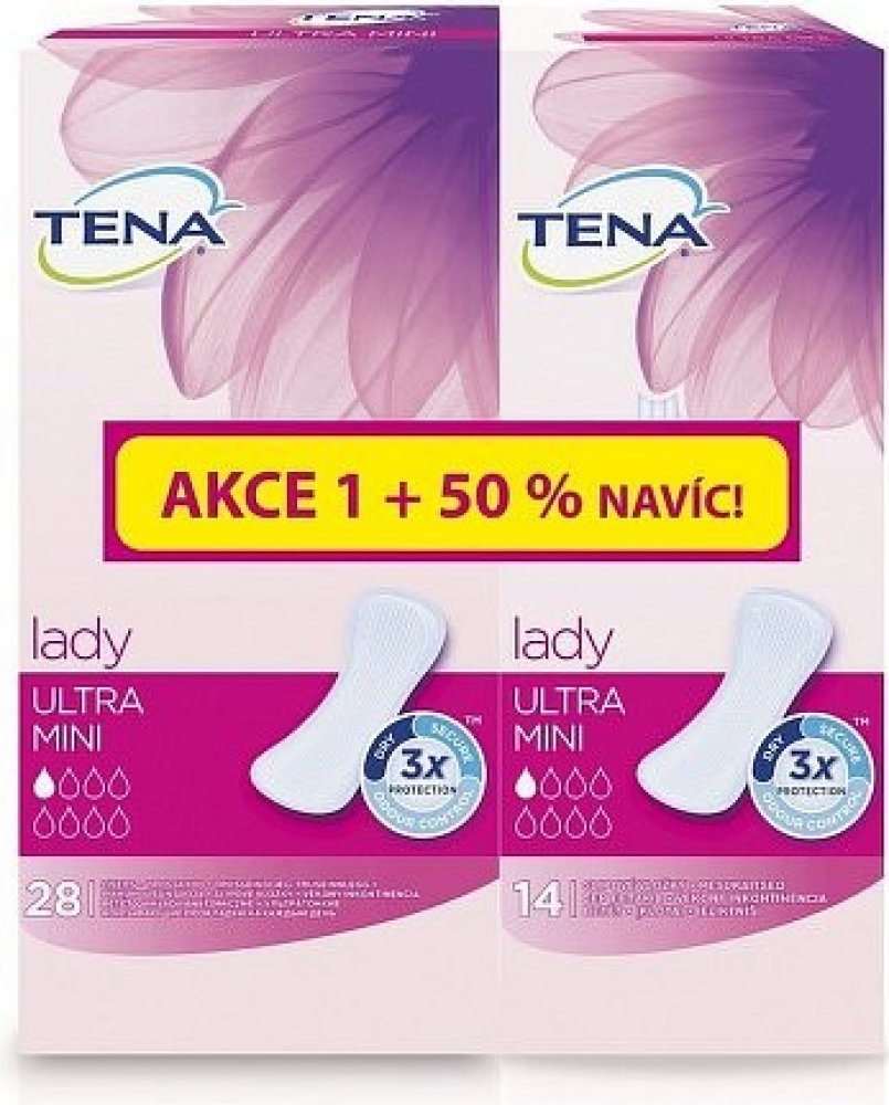 TENA Lady Ultra Mini jsou nejmenšími inkontinenčními vložkami z celé řady TENA Lady. Jsou určené pro ženy trpícími velmi slabým únikem moči. Díky své malé velikosti poskytují dokonalý pocit diskrétnosti. Díky jedinečnému absorpčnímu jádru LockAway Core nabízejí vysokou schopnost absorpce a zajišťují tím větší pocit jistoty a komfortu. Systém Fresh Odour Control pro pohlcování zápachu pak zajišťuje příjemný pocit svěžesti až po dobu 8 hodin. Hedvábně jemný povrch Silky Softness zaručuje příjemný pocit při nošení a lepící proužek udrží vložku na svém místě. Pomocí Systému Body Shape má vložka anatomický tvar a dokáže se tak snadno přizpůsobit tělu. Dermatologicky testováno.