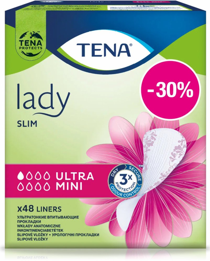 Na malé a příležitostné úniky moči je zde inkontinenční slipová vložka TENA Slim Ultra Mini, která je velmi tenká, nabízí však vynikající absorpci pro spolehlivou a diskrétní ochranu. Stejná velikost jako u běžných slipových vložek, ale mnohem vyšší absorpce díky technologii microPROTEXT, která rychle uzamyká tekutinu uvnitř vložky. Tenká a spolehlivá slipová vložka okamžitě brání únikům moči, zápachu a dodává po celý den pocit svěžesti. Dermatologicky testováno. Balení obsahuje 48 ks.