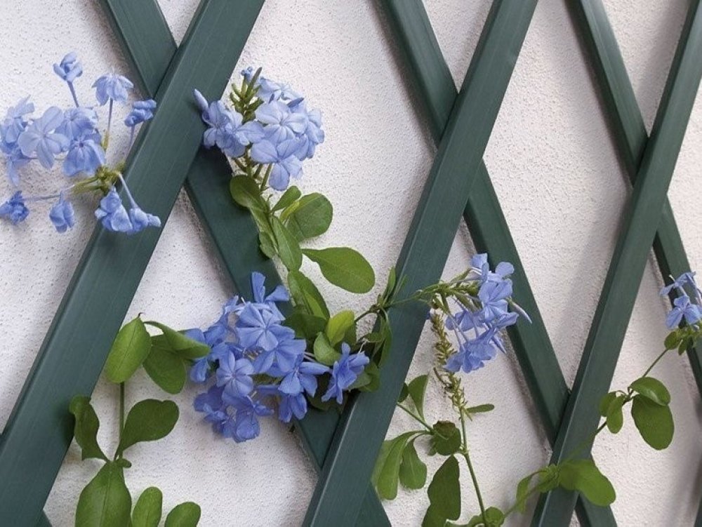 Plastová mřížka ideální pro podporu popínavách květin na stěnách.