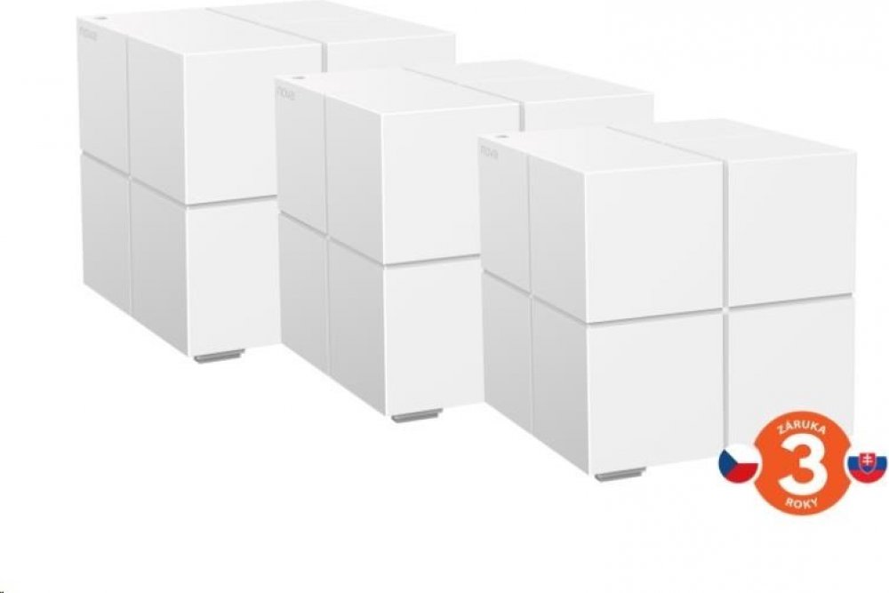 WiFi systém Tenda MW6 pro kompletní a stabilní pokrytí celého domu. Všechny satelity v tomto systému jsou navzájem propojeny a vytváří jedinou síť. Pro vyšší rychlost i stabilitu poskytují všechny satelity bezdrátovou dvoupásmovou komunikaci na 2,4 a 5 GHz, nebute tak problém připojit veškerá WiFi zařízení (tablety, mobilní telefony, TV, atd.). Každý satelit obsahuje dvě interní antény (každá 3 dBi) a také Gigabitové LAN porty pro připojení dalších zařízení drátově (NAS server, tiskárna, PC). Zcela nepřerušený signál jednotné WiFi sítě s obrovským pokrytím plochy až 600m2 při 3ks satelitů. Pokrytí 1200m2 při 9ks satelitů.