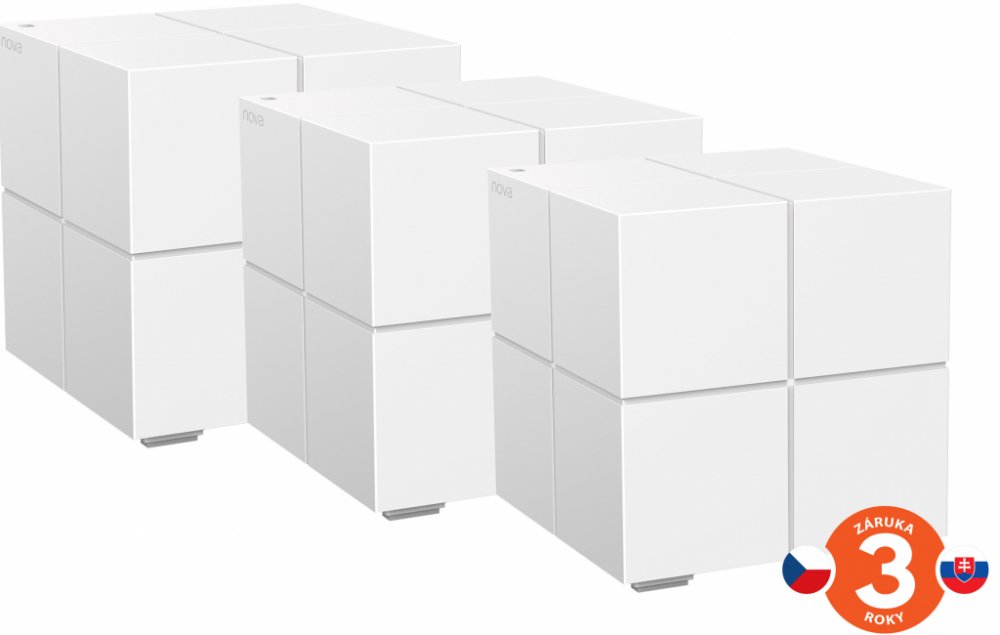 WiFi Mesh systém pro pokrytí celého domu - Tenda MW6. Maximálně systém podporuje celkem 9ks satelitů. Všechny části systému (uzly, satelity, moduly) spolu navzájem komunikují a každá vytváří další pokrytí vašeho domu bezdrátovou sítí. Všechny satelity spolu komunikují souběžně v pásmu 2,4GHz (300 Mb/s) a 5GHz (867 Mb/s), celková rychlost WiFi až 1200 Mb/s. Díky kruhové komunikaci ja zajištěno mnohem vyšší pokrytí a stabilní rychlost než např. u řešení WiFi routeru s extendery. WiFi síť se navíc tváří pouze jako jediná (jednotné SSID), již se nemusíte přepojovat mezi několika sítěmi. Jednotlivé satelity si automaticky a to zcela bez výpadku nebo vašeho postřehnutí přepojují vaše koncové zařízení dle toho, kde se nacházíte. Např. při telefonování přes Internet můžete volně přecházet mezi patry svého domu, po zahradě, a jednotlivé satelity si váš mobilní telefon mezi sebou přepojují tak rychle, že nedochází k jedinému výpadku nebo přerušení. Navíc je možné dokoupit další satelity a zvýšit tak pokrytí sítě až na 1200m2. Maximum je celkem 9 satelitů.