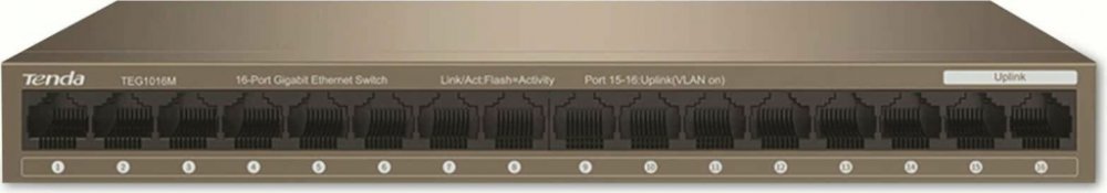 Tenda TEG1016M je 16ti portový gigabitový desktop switch. Auto MDI/MDIX. Propustnost 32Gb/s. MAC address 8K, VLAN, Jumbo Frame 10K, ochrana proti přepětí 6 kV. Kovové provedení. Desktop nebo montáž na zeď. Napájení AC/DC. Fanless, bez ventilátorů.