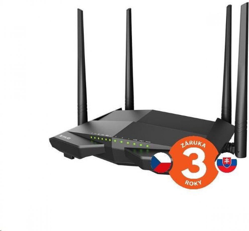 Dvoupásmový Gigabitový VDSL2/ADSL WiFi AC1200 router 802.11 ac/a/b/g/n, podpora VDSL2 Profile 35b, VDSL, ADSL2+, ADSL2, ADSL, SMART CZ aplikace, 1x GWAN, 3x GLAN, 4x anténa 5 dBi, až 1200 Mb/s (2,4GHz 300 Mb/s + 5GHz 867 Mb/s), IPv6, USB port - sdílení SAMBA, TR-069, VPN Client, Universal Repeater, MU-MIMO, Beamforming.