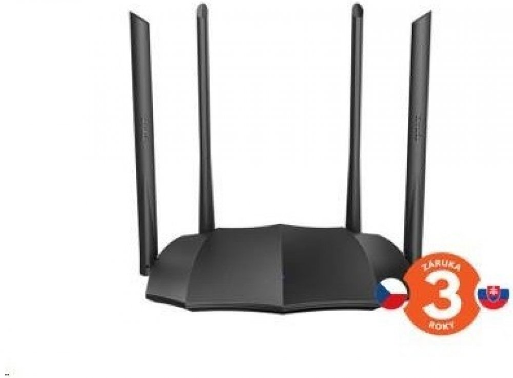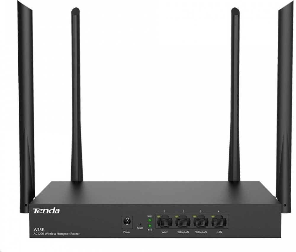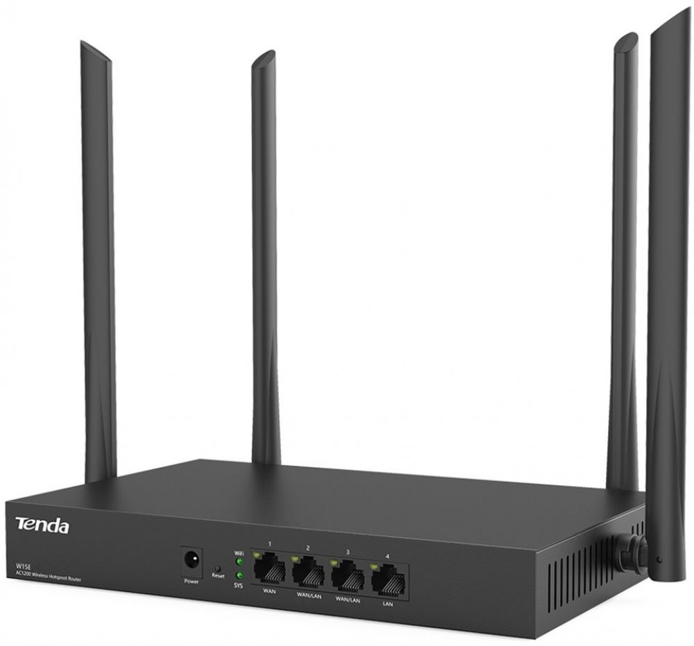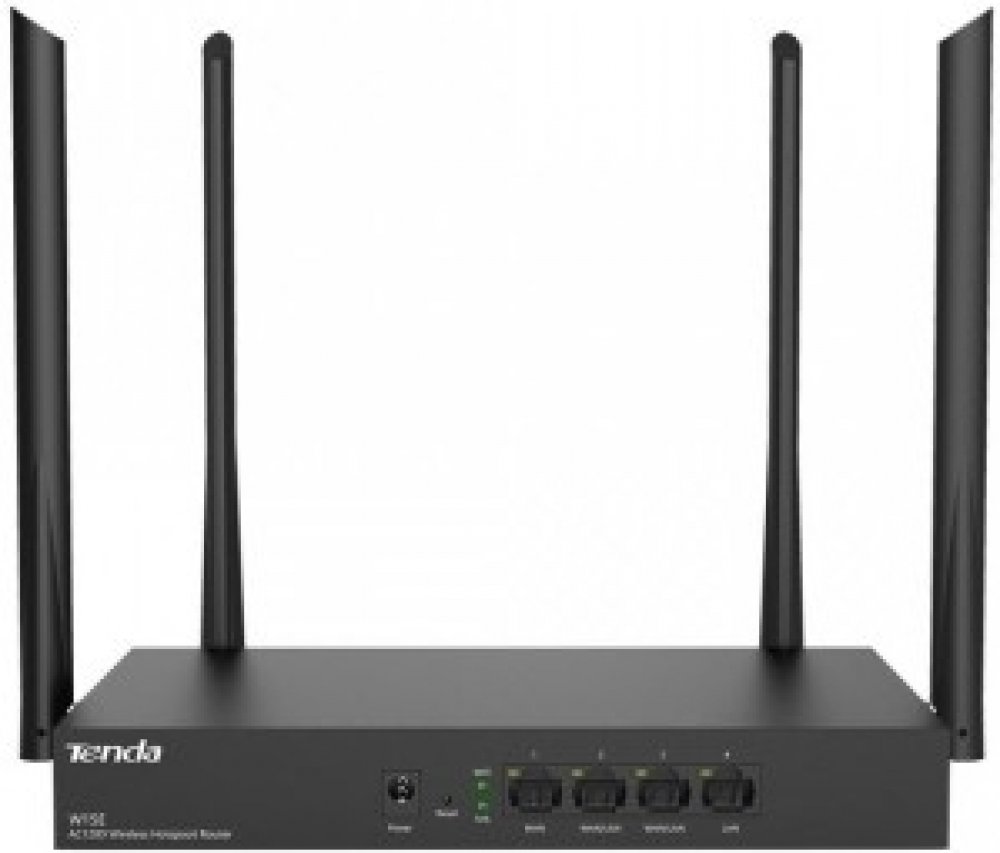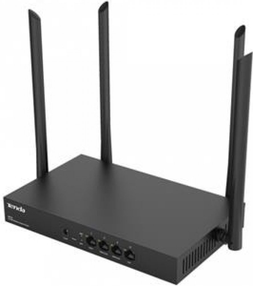 Dvoupásmový bezdrátový WiFi Hotspot router pracující souběžně v pásmu 2,4GHz (300 Mb/s) a 5GHz (867Mb/s), celková rychlost WiFi až 1167 Mb/s, standardy WiFi 802.11ac/a/b/g/n, multi WAN balance 1x WAN, 2x WAN/LAN, 1x LAN, QoS, zabezpečení WPA/WPA2-PSK, vlastní Captive portal (stránka pro vlastní přihlášení např. pro hotely), 4x anténa 6 dBi. Router umí spravovat Access Pointy Tenda i9, i21, i24, i25 a další. IPv6 adresace a VPN server/Client, WiFi pro návštěvy a mnoho dalších funkcí. Zabezpečení díky DDoS protection, ARP attack protection, DDNS a další.