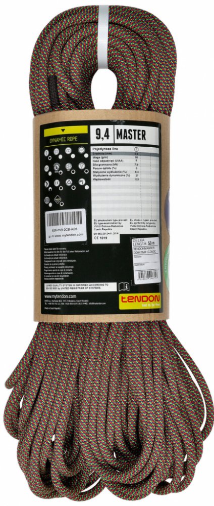 Tendon Master 9.4 mm ECO s úpravou oplet ECO complete shield. Tato impregnace neobsahuje PFC a je šetrná k životnímu prostředí. SBS oplet zajišťuje snadný a hladký průchod lana v karabinách a expreskách. Lano je ideální volba pro výkonnostní a pokročilé lezce.